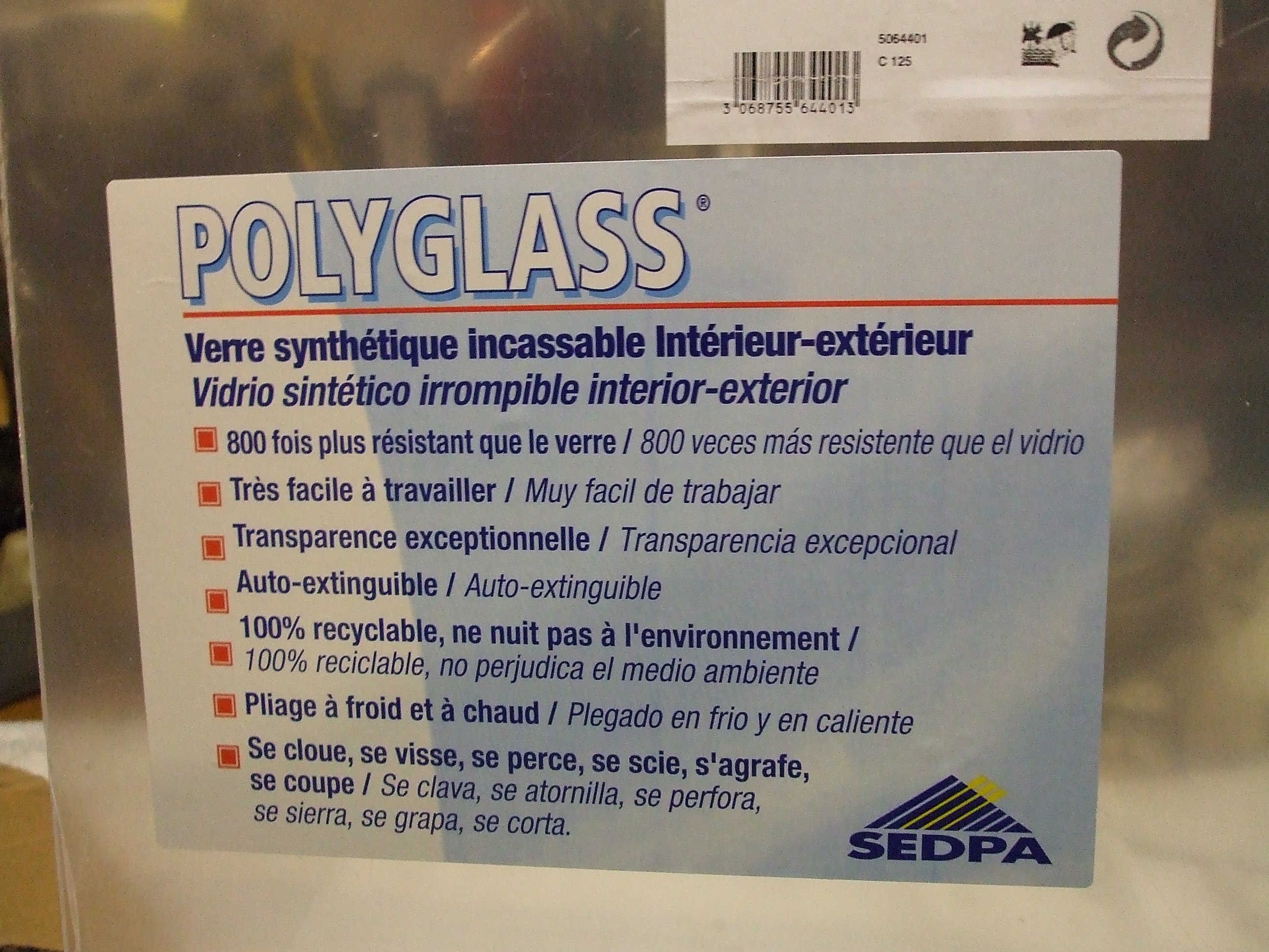 Pour le matériel , il vous faudra aller dans un magasin de bricolage et acheter une plaque de plexiglass transparente de 4 mm d'épaisseur (résistante aux UV et qui ne se casse pas trop facilement) .Voir photo.
