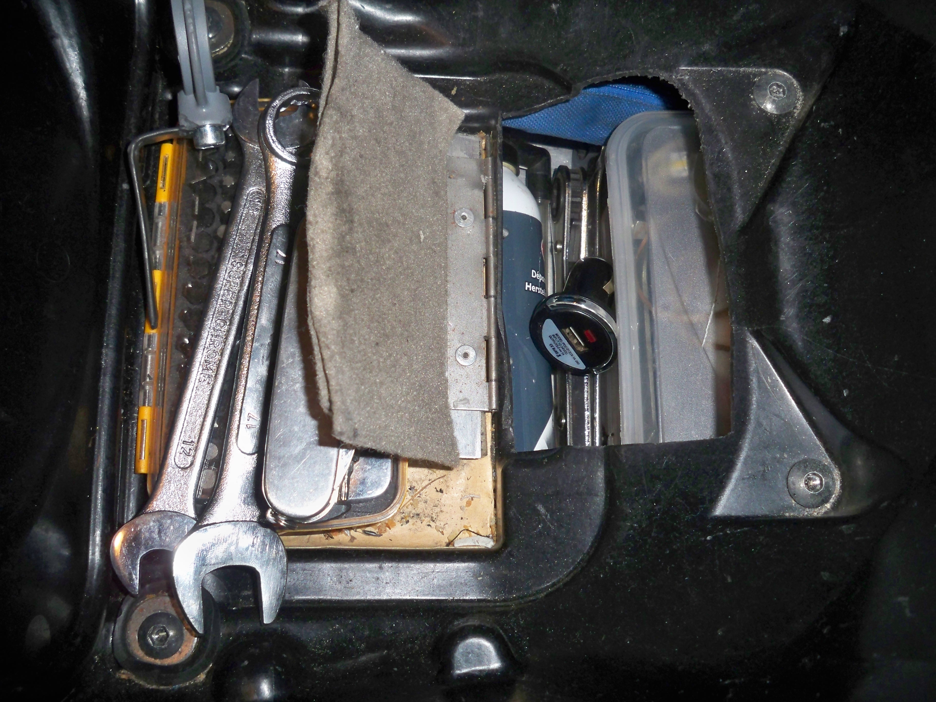 En revanche, la place sous le coffre suffisante pour y installer un rangement supplémentaire comme sur la 2ème photo ce n'est possible sur les S sans ABS!!![]()