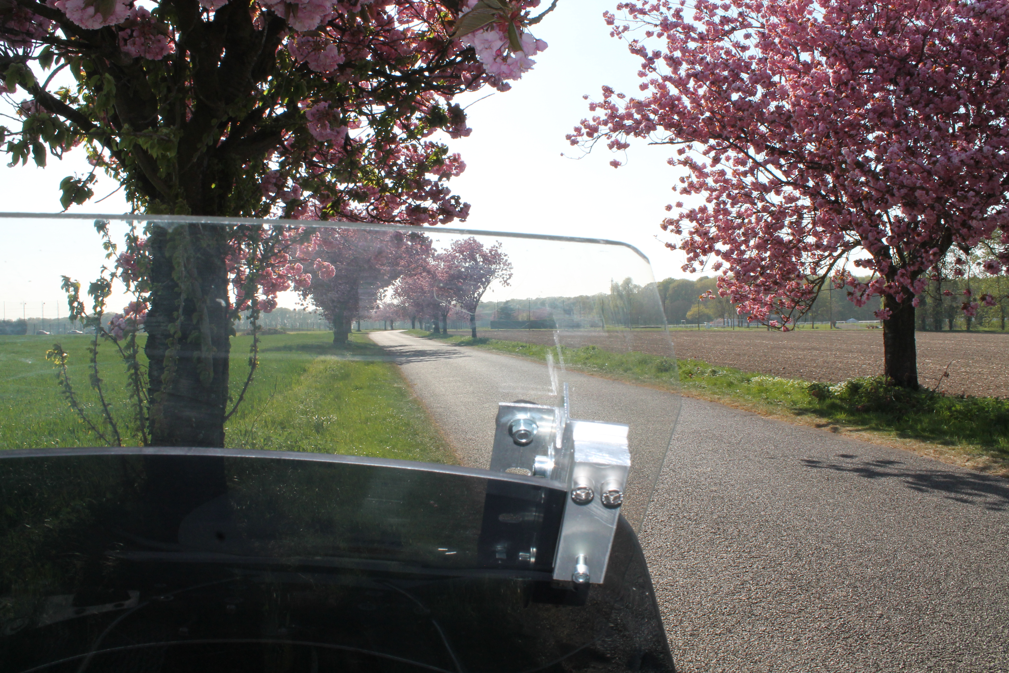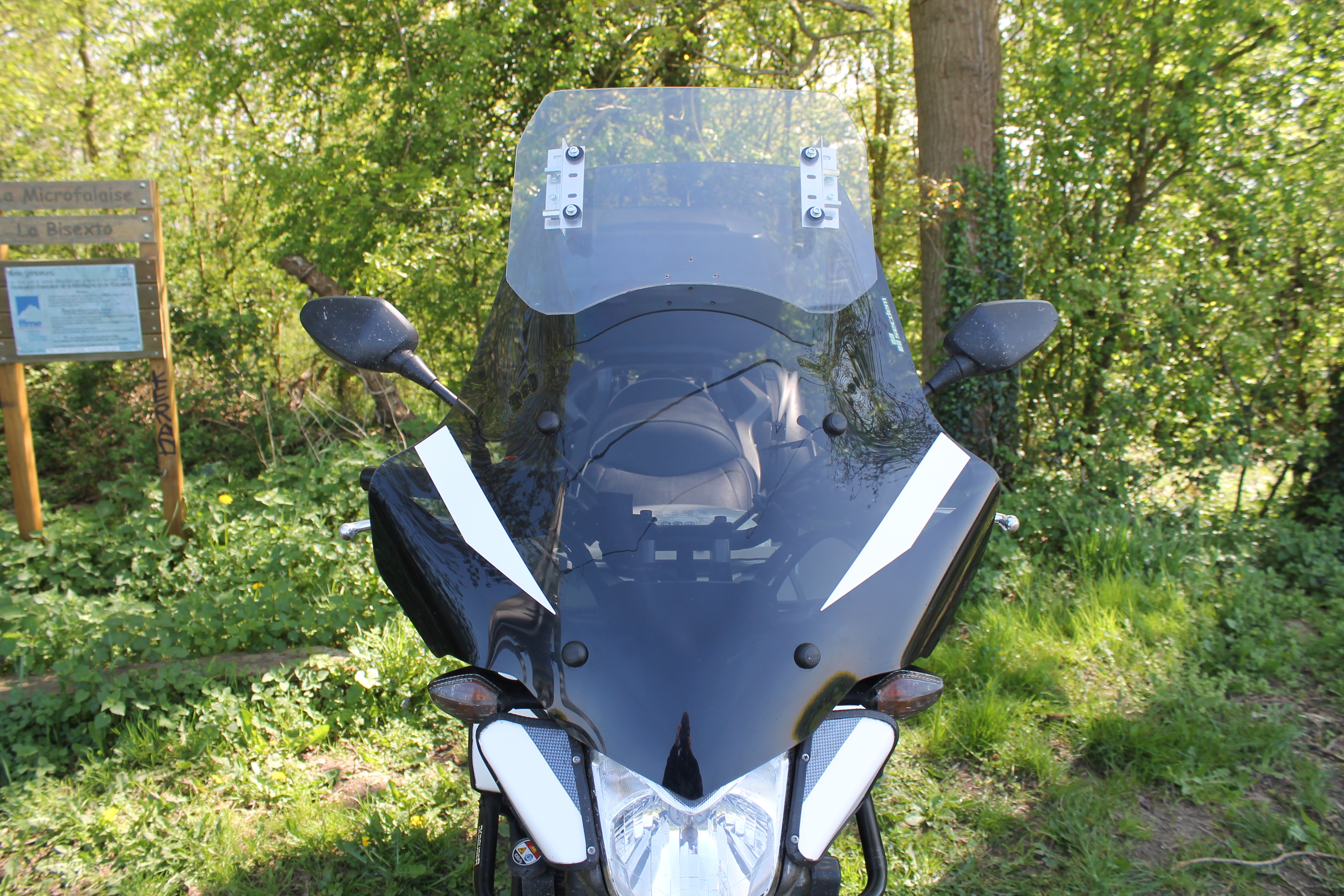 Deux photos: sur le déflecteur de jambe gauche et une vue générale (déflecteur sur le coffre version printanière !)
