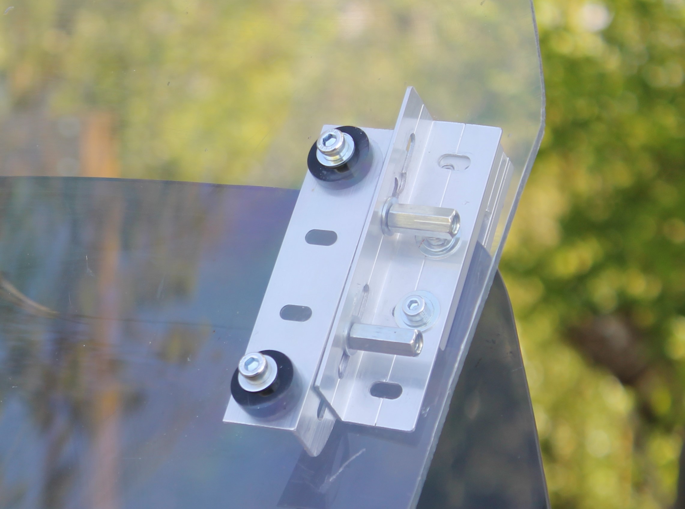 du verre synthétique de 4 mm d'épaisseur, des vis 6 pans creux de 3 et 4 (le tout chez Leroy Machin, ....)
