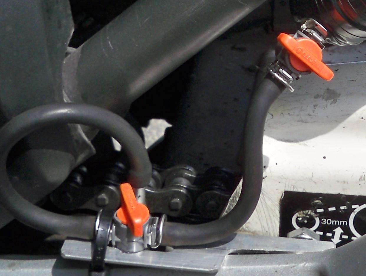Le robinet de réservoir est fixé avec cette procédure : pour éviter qu'il ne soit en saillie, il faut le mettre sur le bord du bouchon au bout du coude à 30° et percer au diam de la conduite du robinet puis le coller avec la colle PVC en forçant, idem pour la mie à l'air du réservoir. Ne pas enlever la vis du bouchon lors de cette opération, une fois la fixation faite, dévisser et nettoyer puis mettre un joint "caoutchouc" à la place de celui d'origine. Les deux bouchons supérieur et inférieur peuvent ainsi être ouvert et permettre le débouchage éventuel de la mise à l'air et/ou du robinet d’arrêt.
