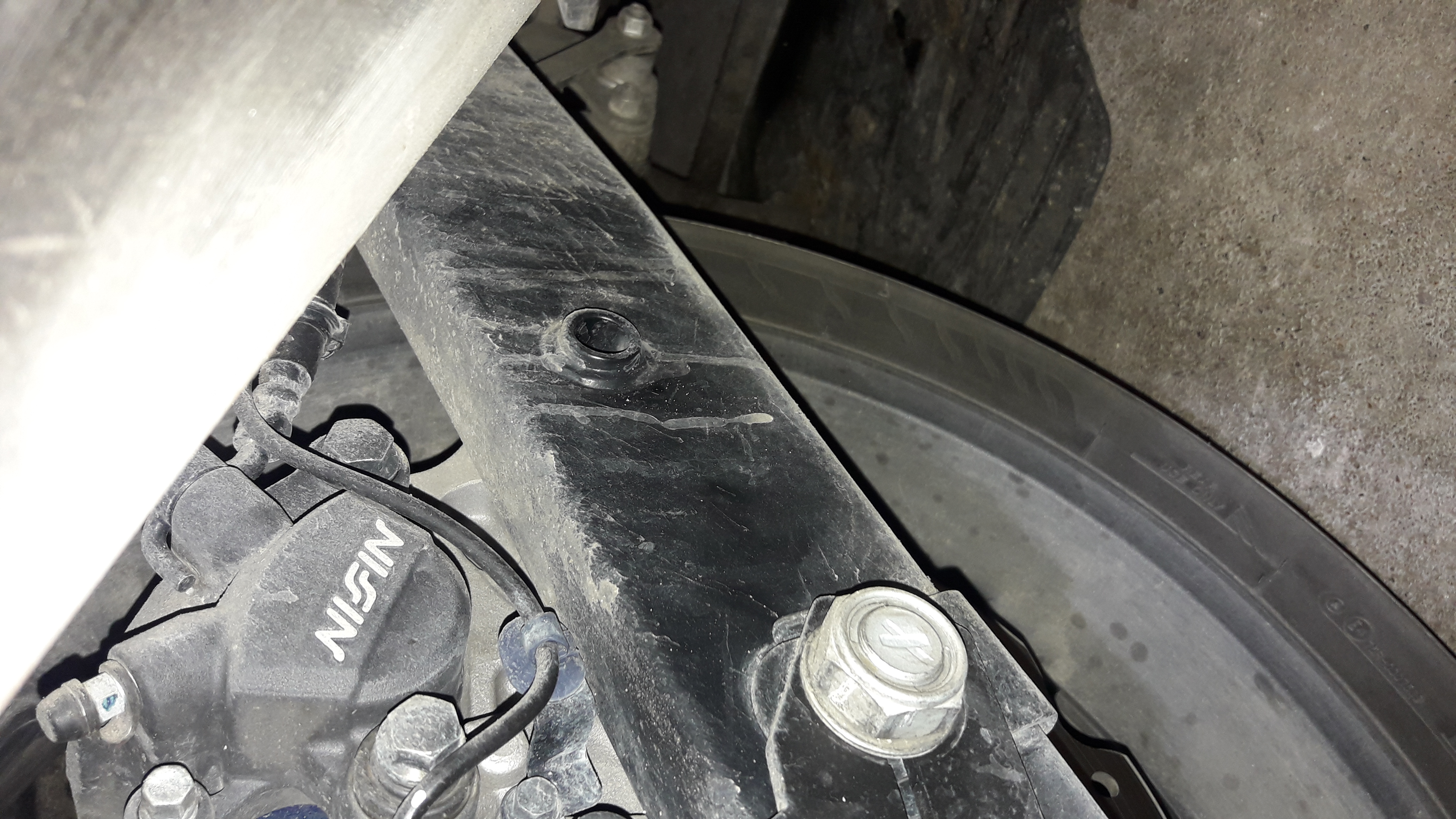 2. A droite du bras oscillant vers le frein il y a un trucmuche circulaire