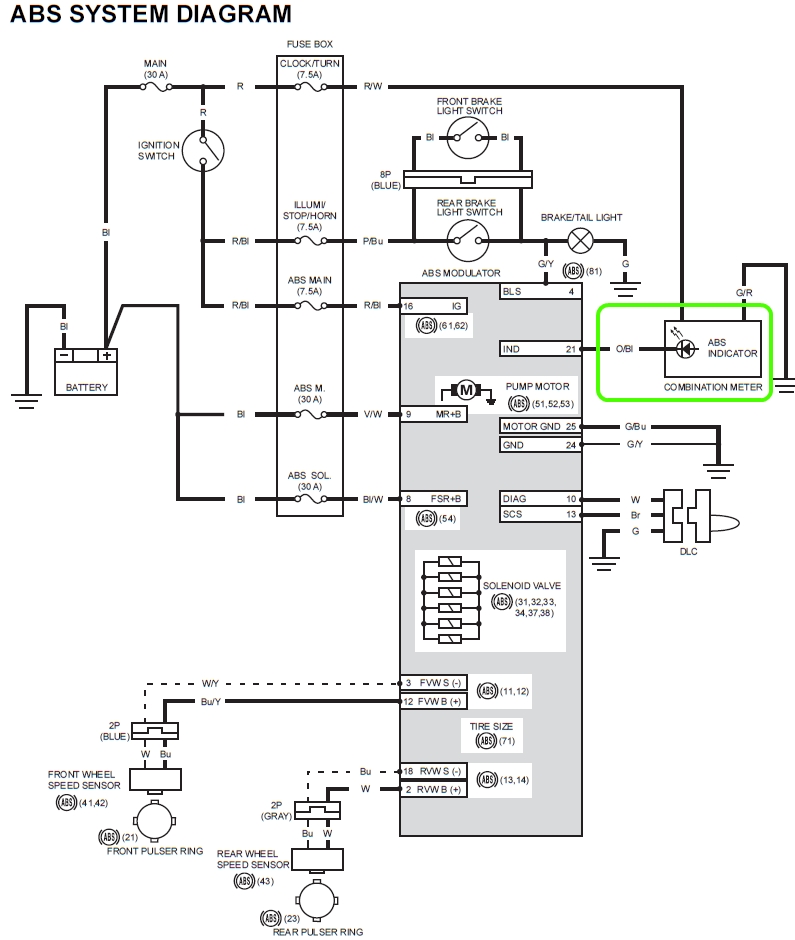 => Le compteur ne reçoit pas les informations des capteurs de roue de l'ABS.