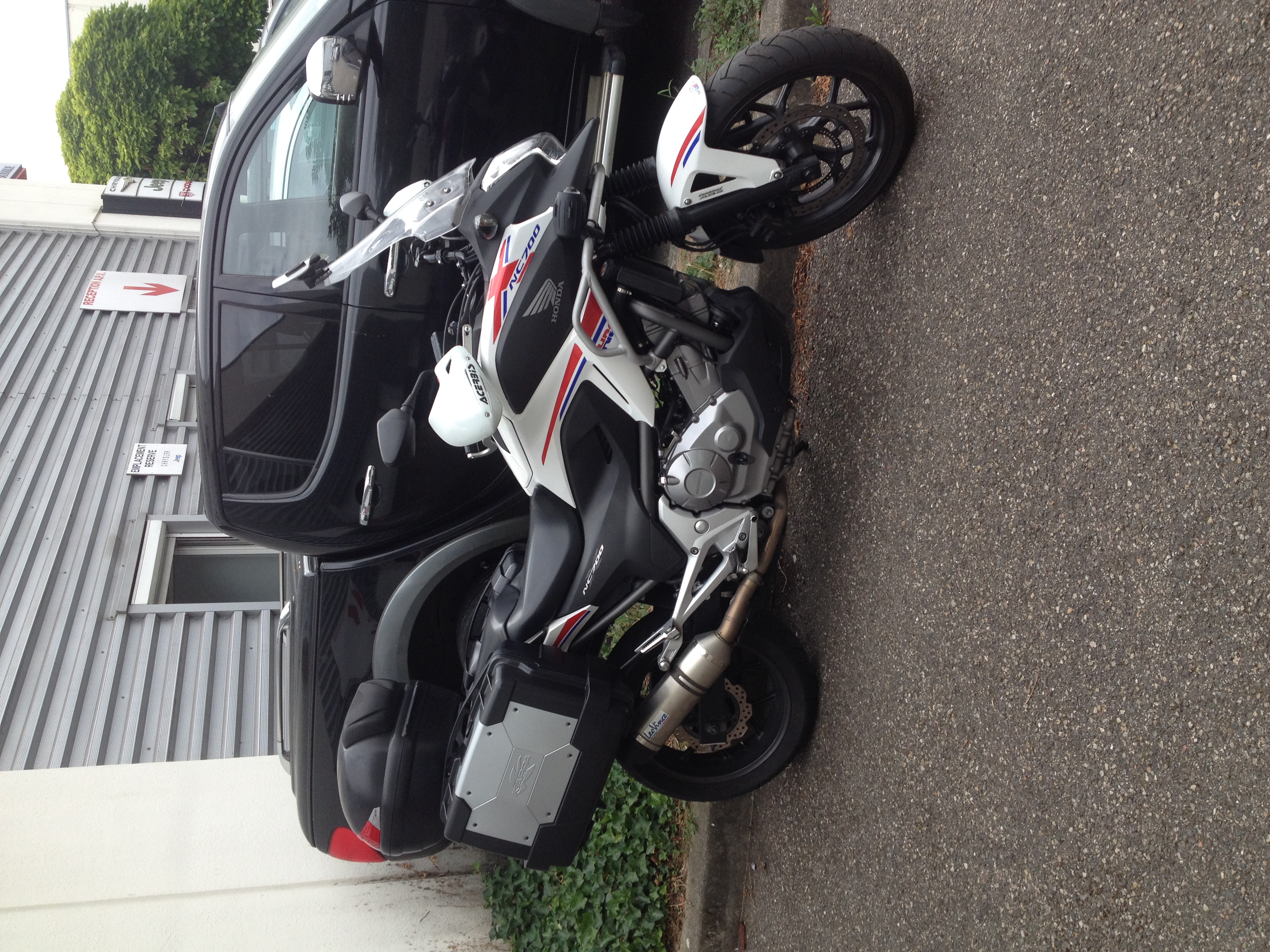 Fabrice m'a installé un support Sw-Motech amovible pour mes vieilles valises Givi E36 et j'ai gardé le support top case Honda et le topcase Honda (compatoble 2 modulables C3 Schuberth) cout moins de 230€ chez Ixtem moto