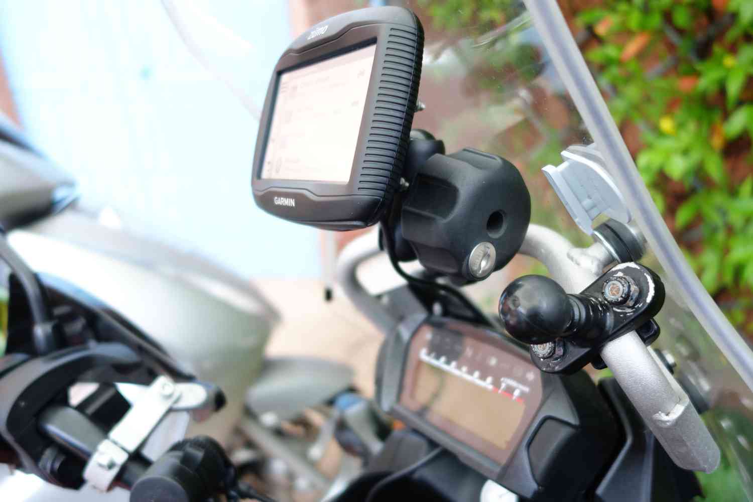Pour info sur mon ex nc750XD la fixation de mon zumoLM390 sur la barre de ma bulle haute Honda, à l'aide de pièces RAM Mount.