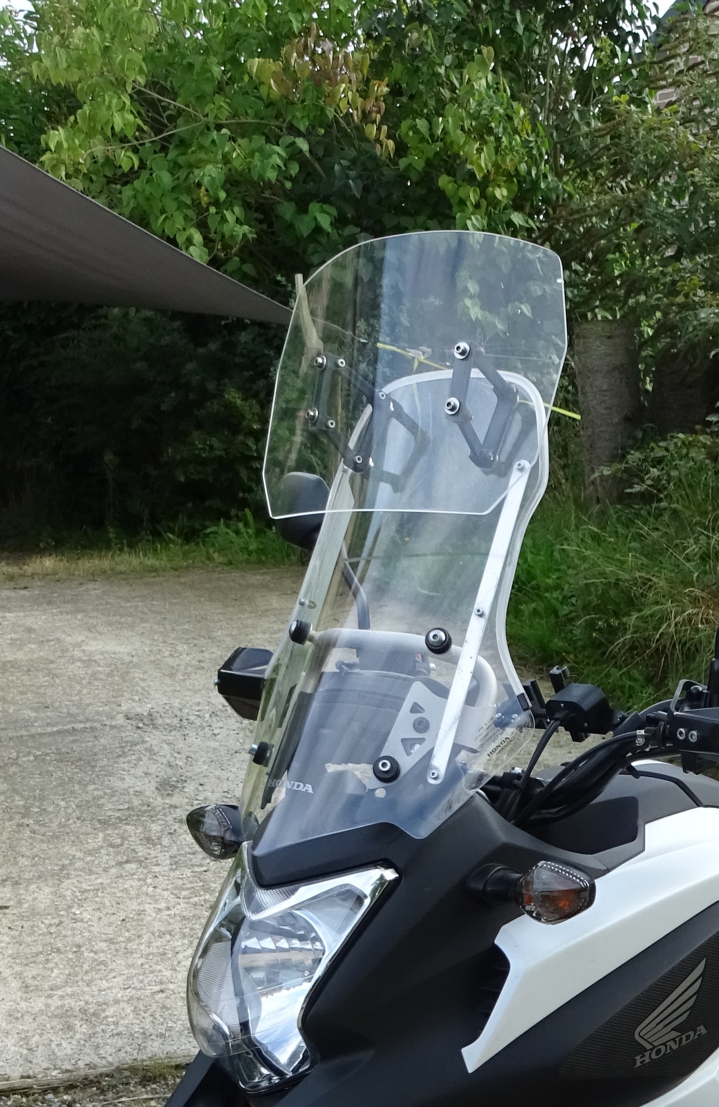 Sur ma NC750X j'ai opté pour la bulle haute Honda car la Givi en plexiglas avait éclaté lors d'un choc avec une branche !!!