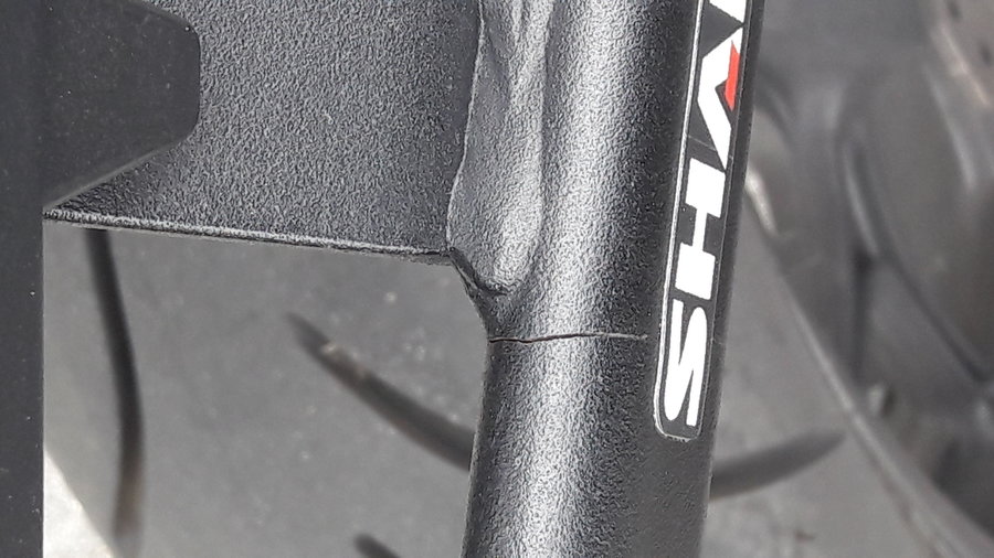 Honteux pour les deux photos. Sur la première une qualité de métal douteuse pour une pièce de contrainte (c'est clairement un alliage à deux balles pour fissurer comme ça), sur la deuxième un assemblage minable dont on peut prédire à l'avance la corrosion et la fragilité. Côté Givi c'est un peu mieux quand même.