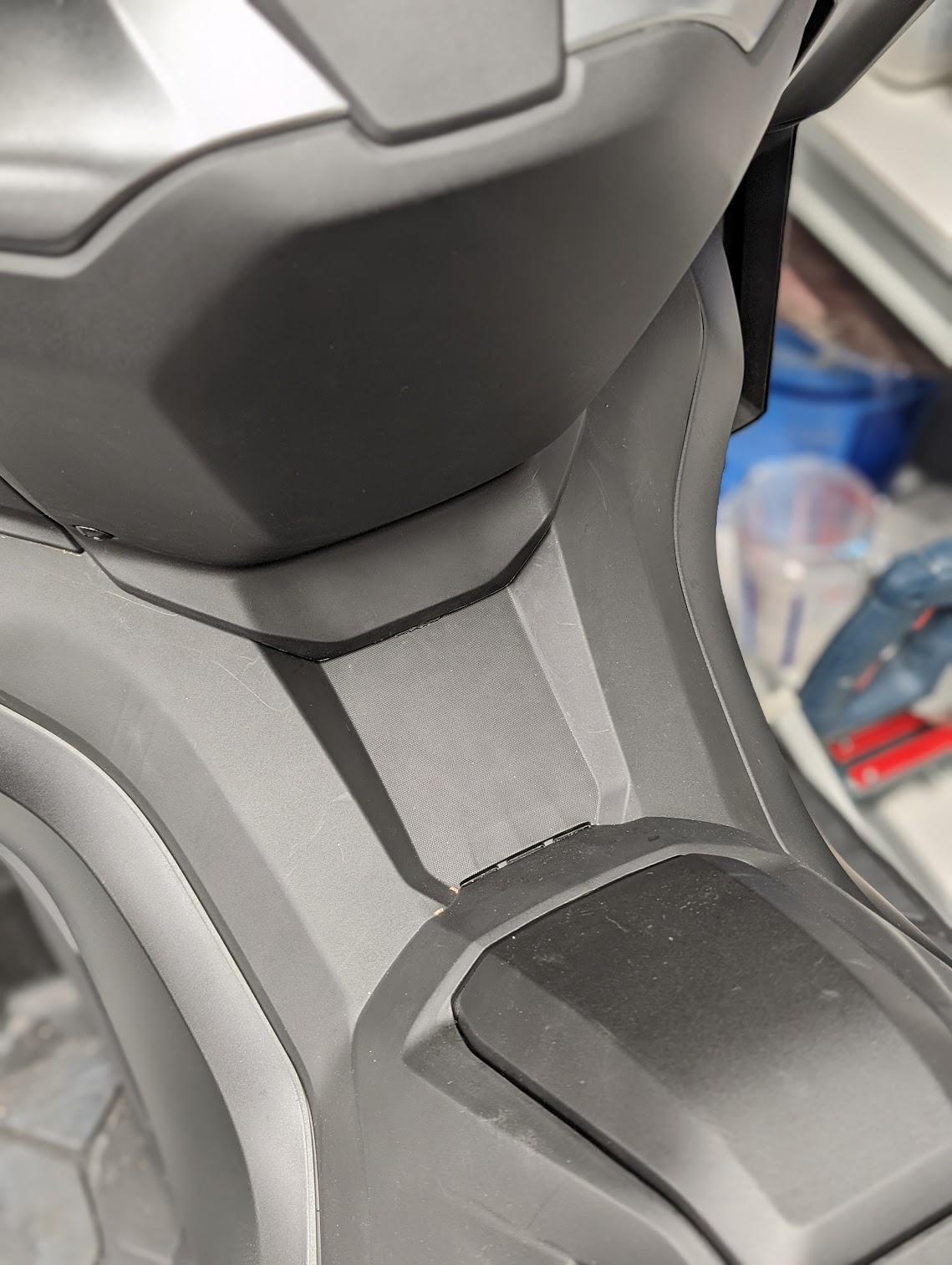 Il y a vraiment très peu d'espace vide sur le Forza 750 et je n'arrive pas à trouver un endroit. Le boitier qui ressemble à un petit disque dur externe doit être en plus positionné à plat.