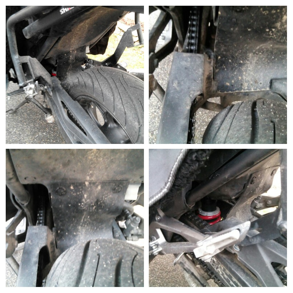 J'avais trouvé que le tour de roue / protège chaîne Givi n'était pas mal au niveau de la protection de l'amortisseur et des projections de la chaîne.
