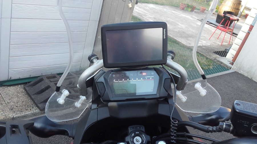 J ai un Tomtom,que je peux trimballer de la voiture a la moto et pour le peu que je m en sert il me va tres bien (surtout pour les adresse dans les grandes villes).Voilà quelques photos de la fixation du GPS
