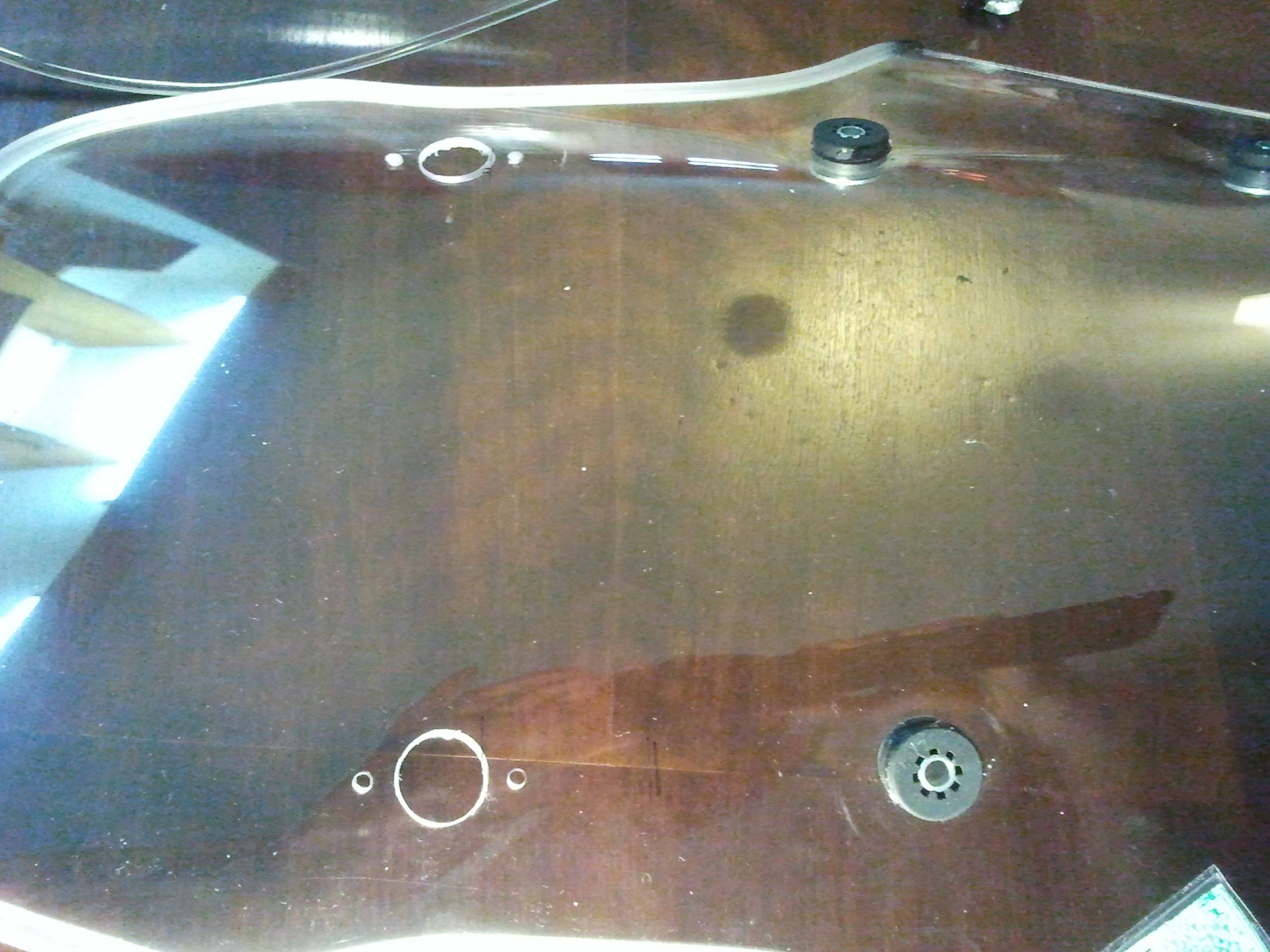Je pense plaquer la Givi avec son dispositif de fixation sur la Honda en position basse, les maintenir avec une ceinture ou quelque chose comme ça, et tracer par en dessous et autour du dispositif au-dessus.