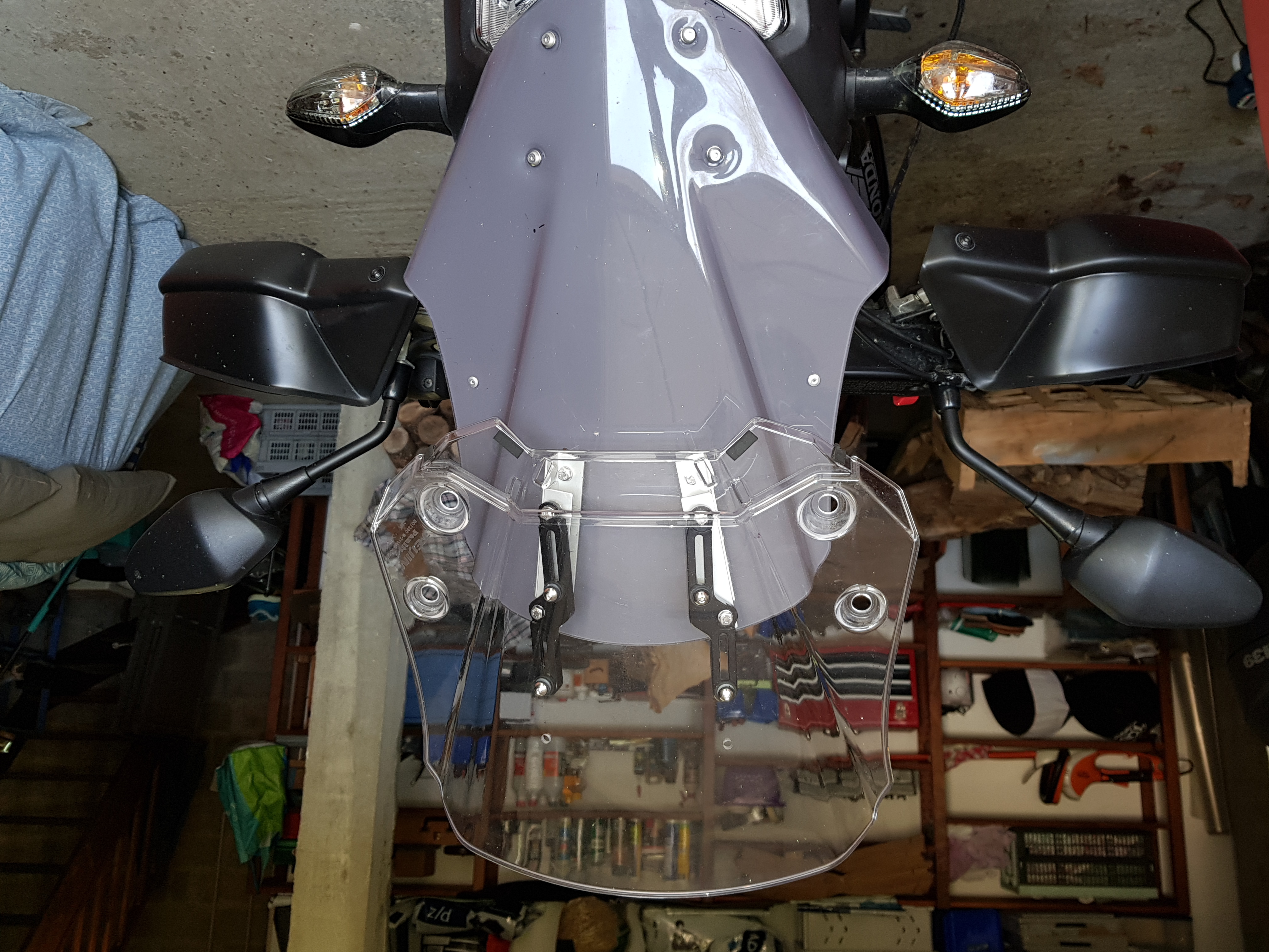 Si mon montage ne s'était pas révélé relativement protecteur, j'aurais pris comme option de prendre une bulle givi Air Flow, l'ayant testé sur une Vstrom 650 version 2017 (pour mon mètre 76, super protection en position basse- vent juste au dessus du casque - soit 38 cm, sachant qu'elle grimpe + 12 cm soit à 50 cm) .