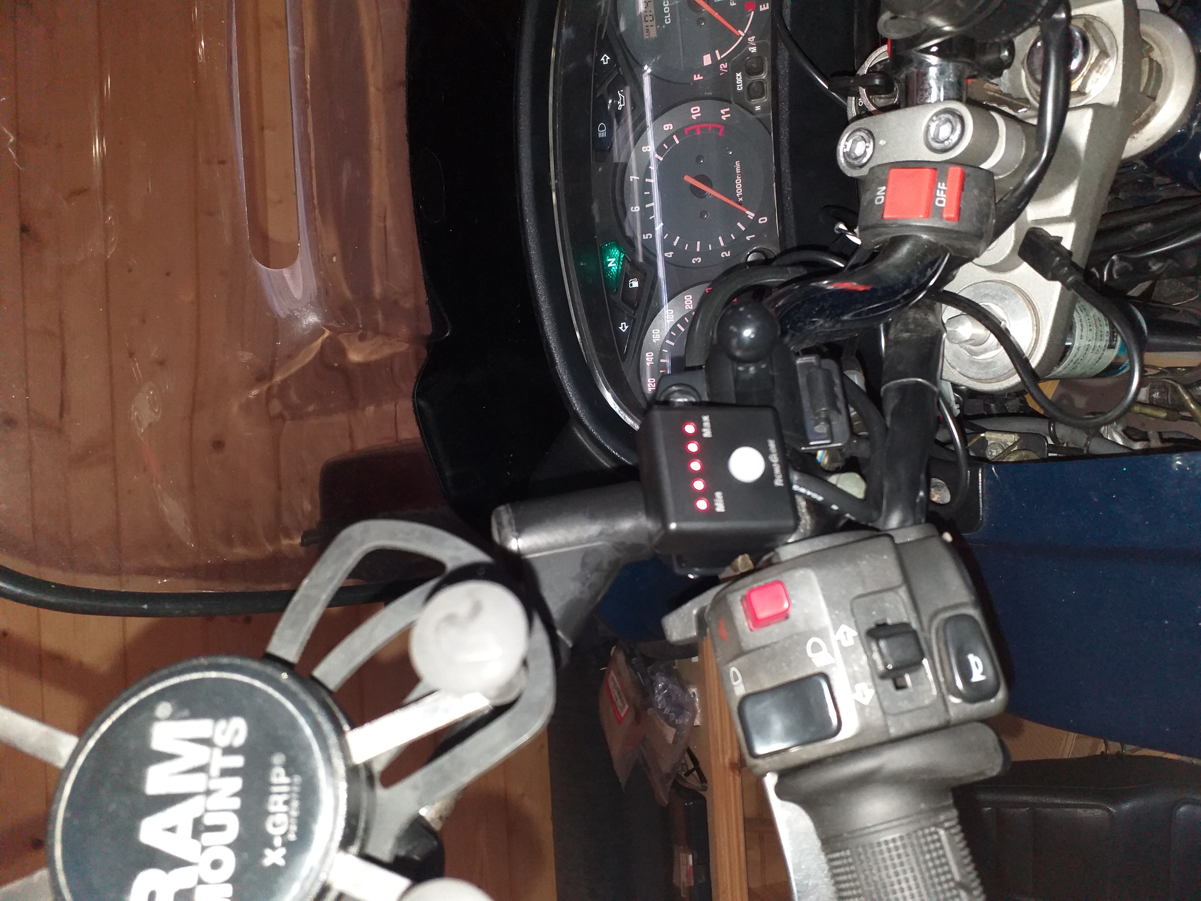 Obligé par contre de positionner mon support Givi sur le côté gauche de la barre sinon je vois plus le compteur, même à l’horizontale. Là pour voir les chiffres de conso faut que je me penche un peu.