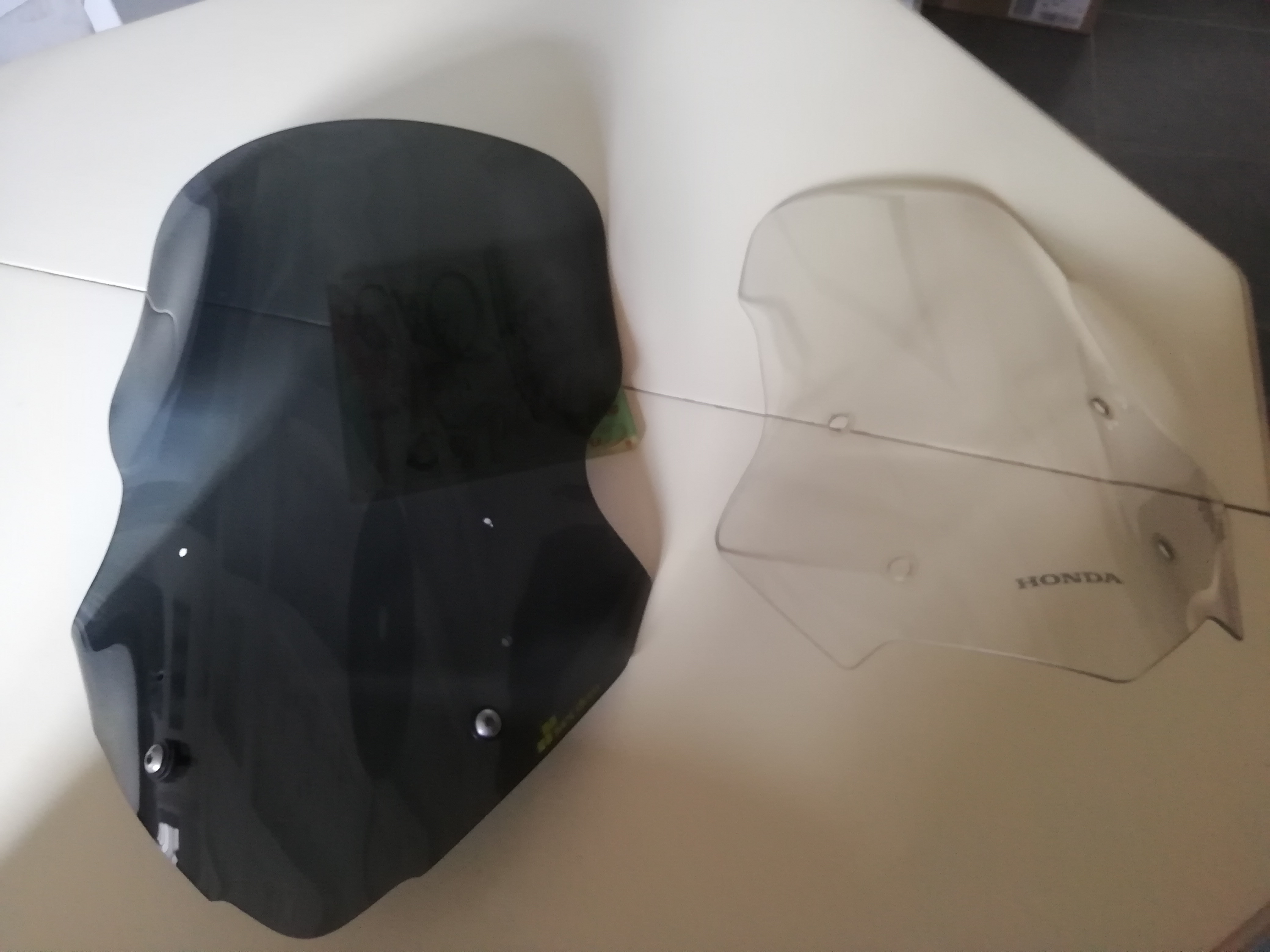 Bulle Secdem récue. J'ai juste fait un essai sans la monter en la posant sur ma bulle actuelle ( bulle haute Honda en position haute, déflecteur Puig). La Secdem est plus haute, plus large et beaucoup plus épaisse. Je pense que je vais la monter sur le support de bulle haute Honda comme certains l'ont fait ici en repercant la bulle. Ceci a l'avantage de renforcer la fixation (6 points au lieu de 4) et de conserver le support haut qui est parfait pour installer un Gps dans le champ de vision.