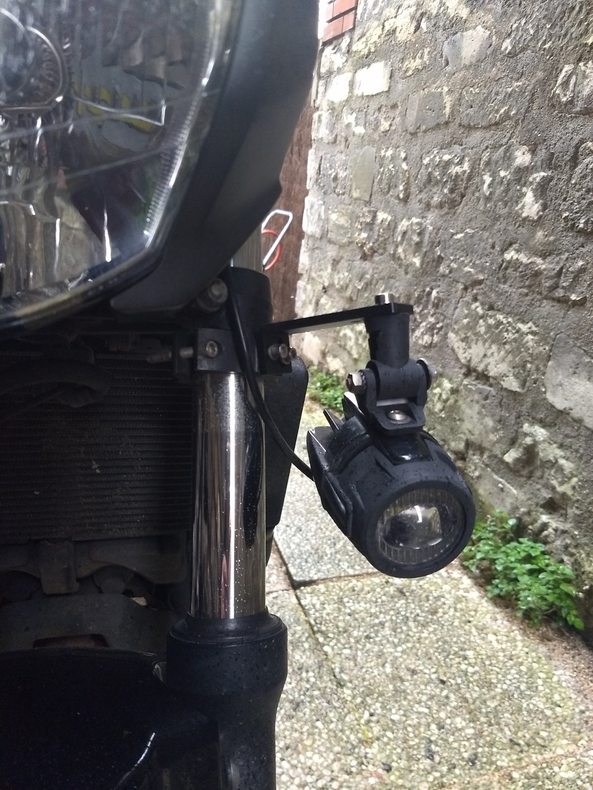 Pour ma part j'ai installé mes antibrouillards directement avec des pâtes en haut du tube de fourche.
