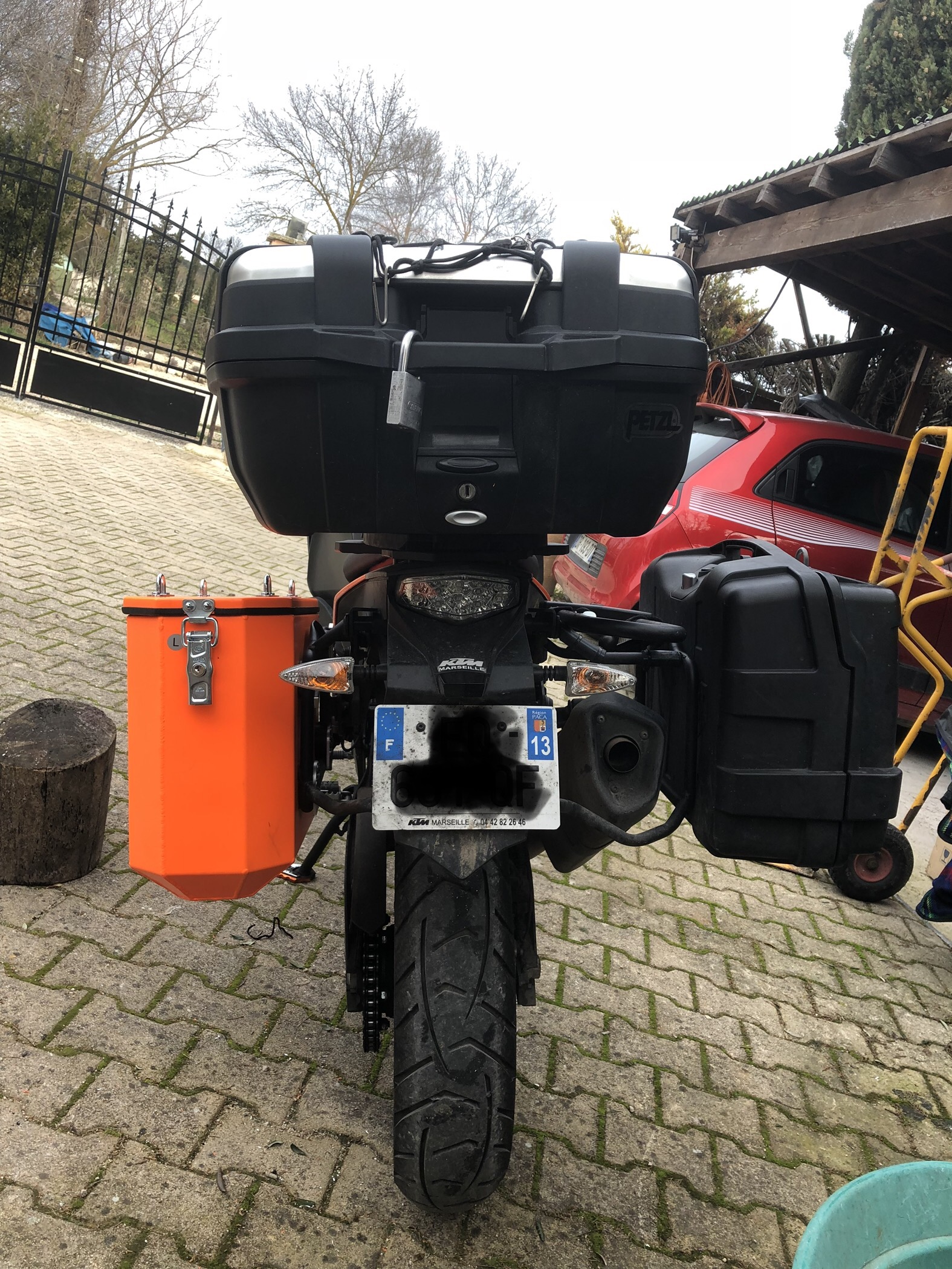Mais ce pot ! Pour celui qui laisse les valises en permanence, les fabricants pourraient pas proposer (option) un pot en-dessous, pour coller la valise à la moto ? Ça me paraît aussi inadapté à la route que les chambres à air des AT...