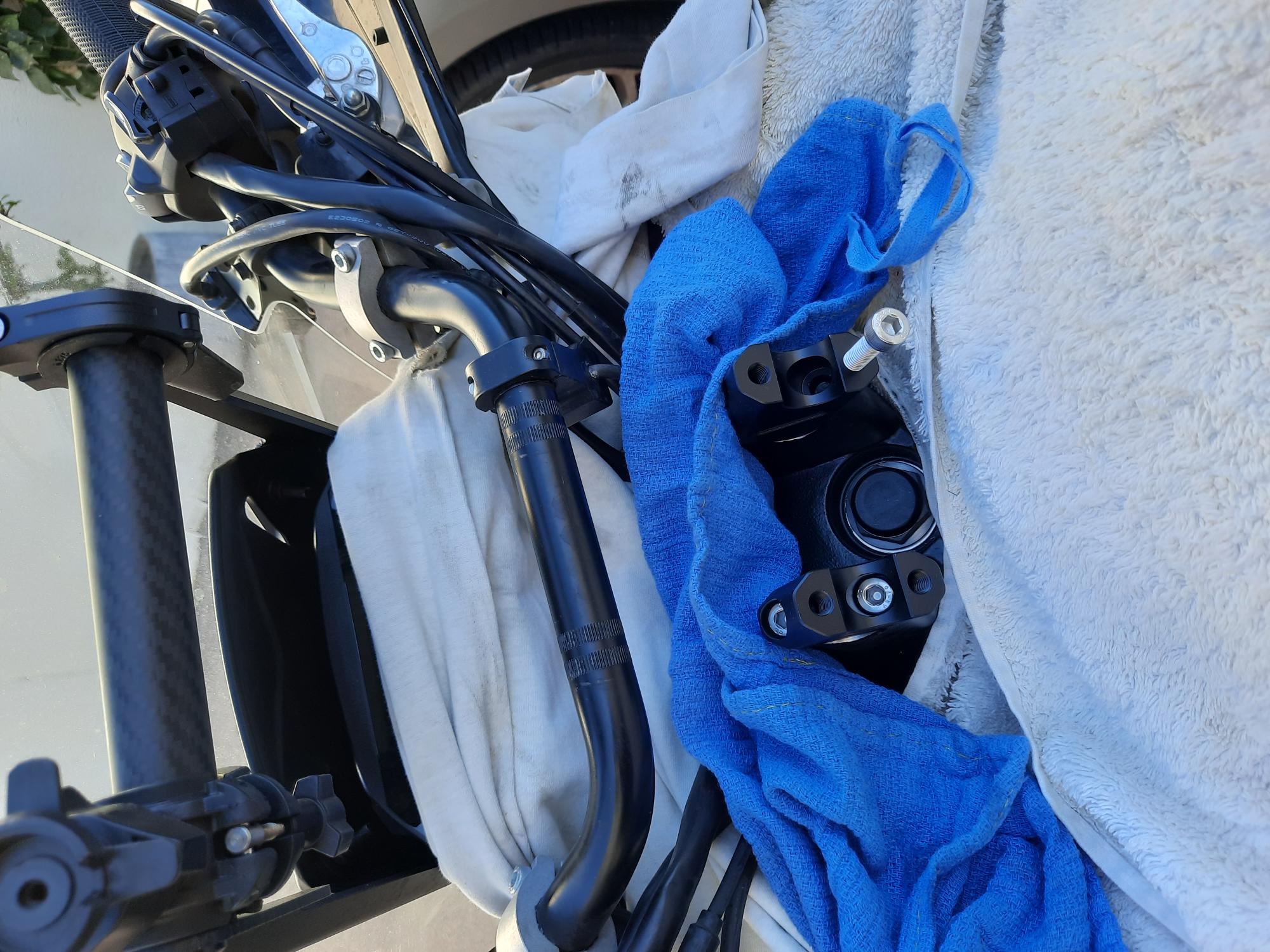 De retour de balade autour de Chantilly,je fais le point sur la rehausse Motea avec déport ( photo Blaise 13) que j'ai installé. Pas d'appui sur les poignets ,bras fléchis,dos bien droit, pratiquement même posture qu'avec le 1150 GS. Le guidon n'engage plus lors des virages. La distance entre le casque et la bulle d'origine étant augmentée,le vent vient frapper juste au dessus du sternum,et ne génère plus de bruit parasites dans l'intégral. J'ai de plus récupéré les fonctions d'aération du casque. Je m'interrogeais auparavant sur l'éventualité de changer la bulle,mais je préfère nettement avoir le casque dans le vent, quitte à rouler plus doucement.