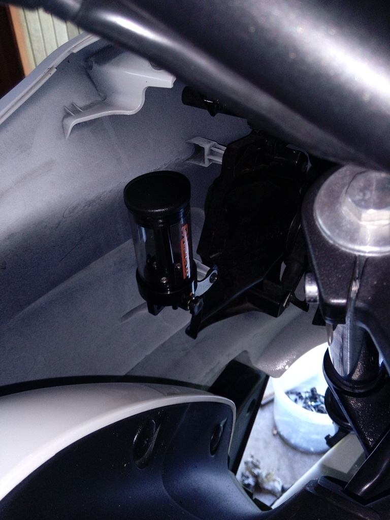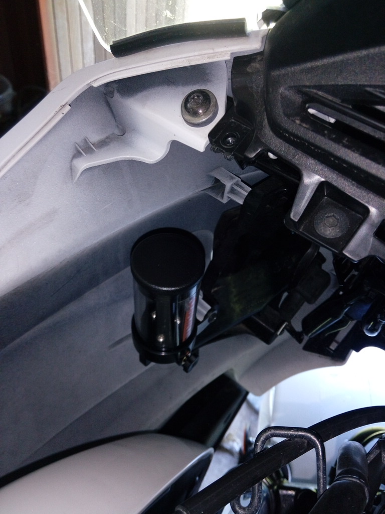 J'ai commencé l'installation du tutoro sur la CTX, à l'avant,dans le carénage sous la fausse grille de gauche