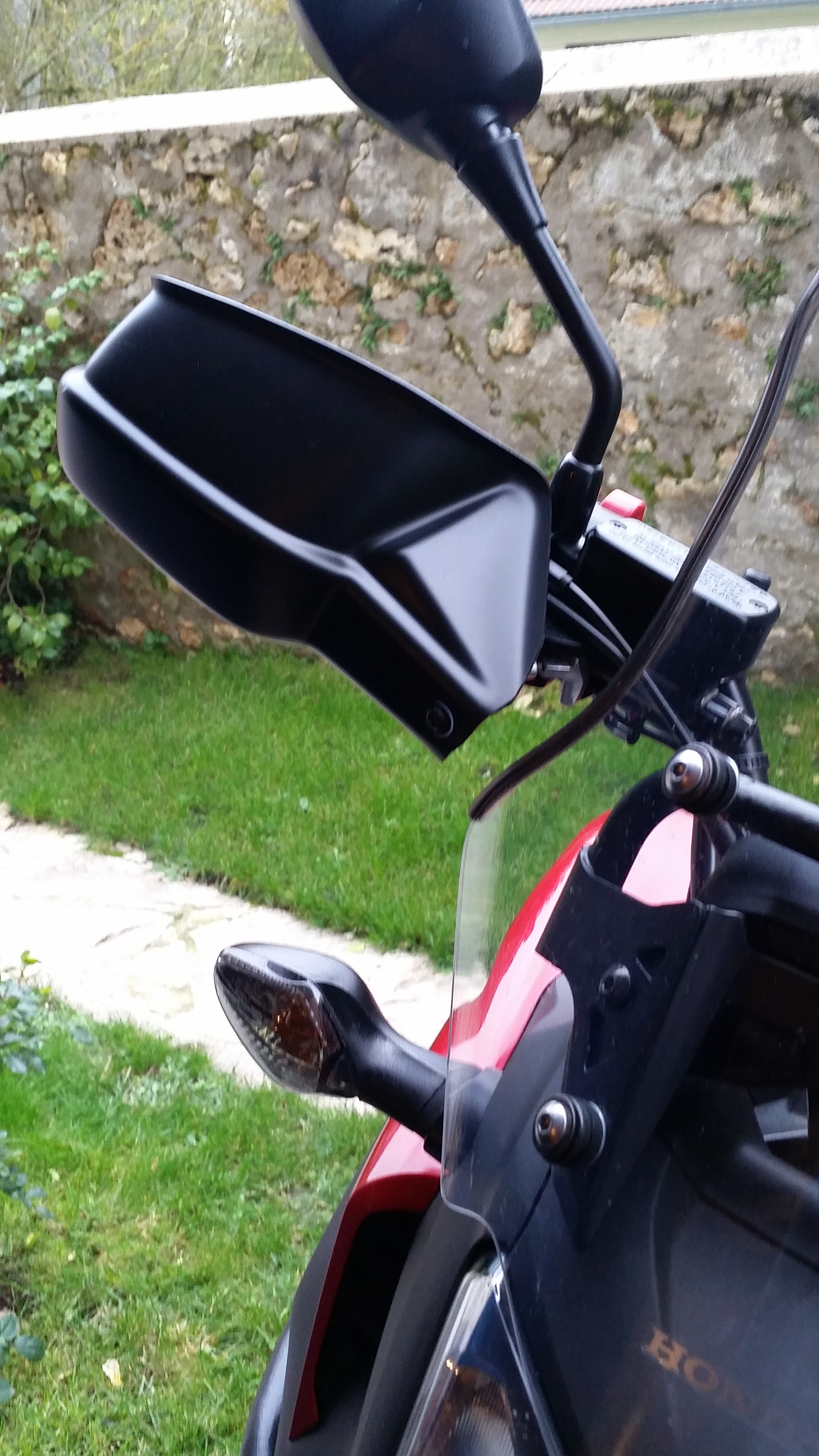 Perso, pour que cela passe avec la bulle haute Honda, j'ai un peu meulé la partie basse des protèges-mains. Cela ne nuit ni à la protection, ni à l'esthétique.