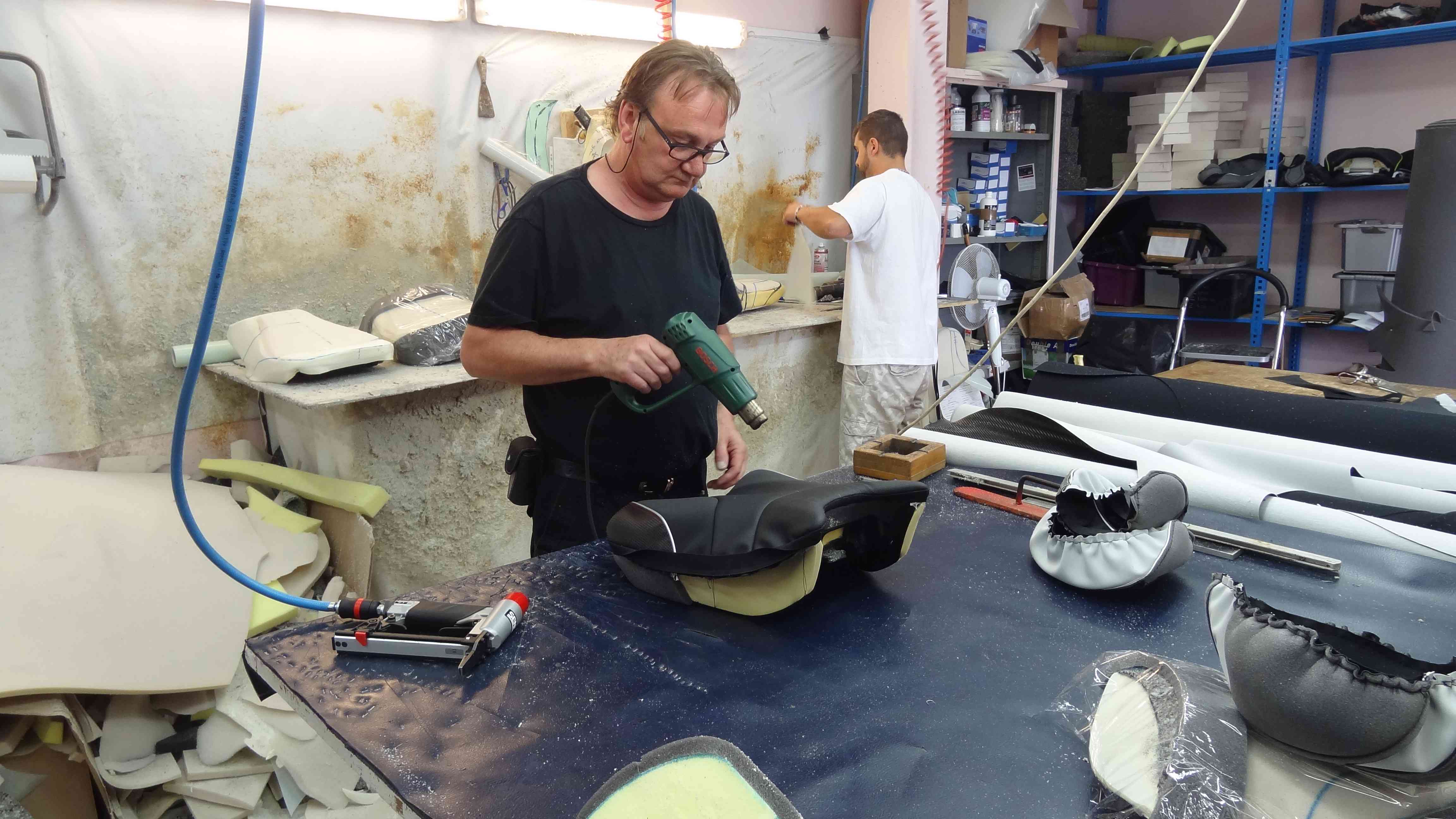 Quand on les voit travailler, la qualité des matériaux, l'épaisseur de "vraie" Bultex qu'ils mettent, l'ajout de latex pour éviter que les pilotes un peu "lourds" se baladent sur la mousse, on comprend le monde qui sépare la série de l'artisanal.....