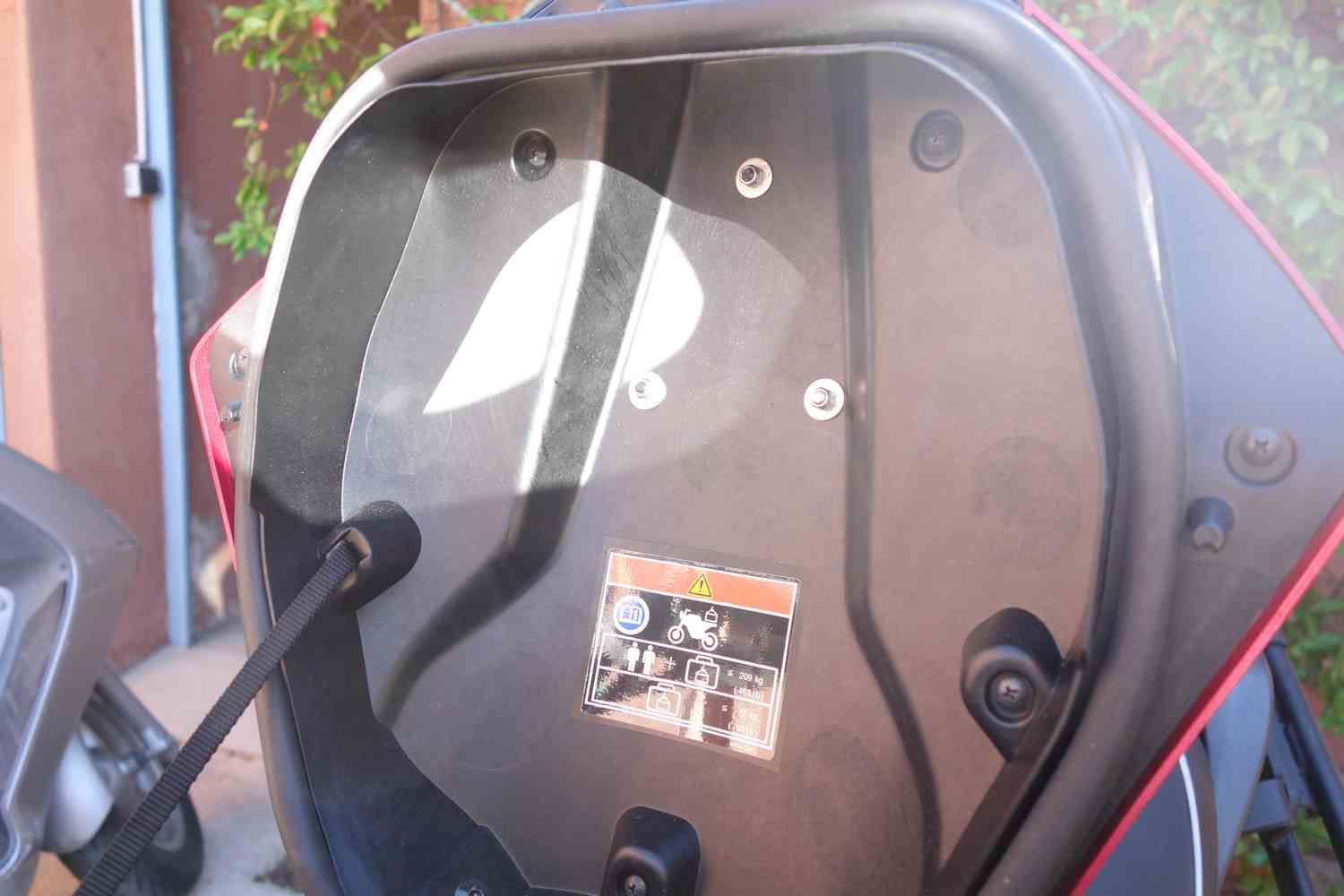 J'avais mis un porte cartes sur le faux "réservoir" fixé avec des sangles en trois points, mais il y a une gêne pour ouvrir le coffre.