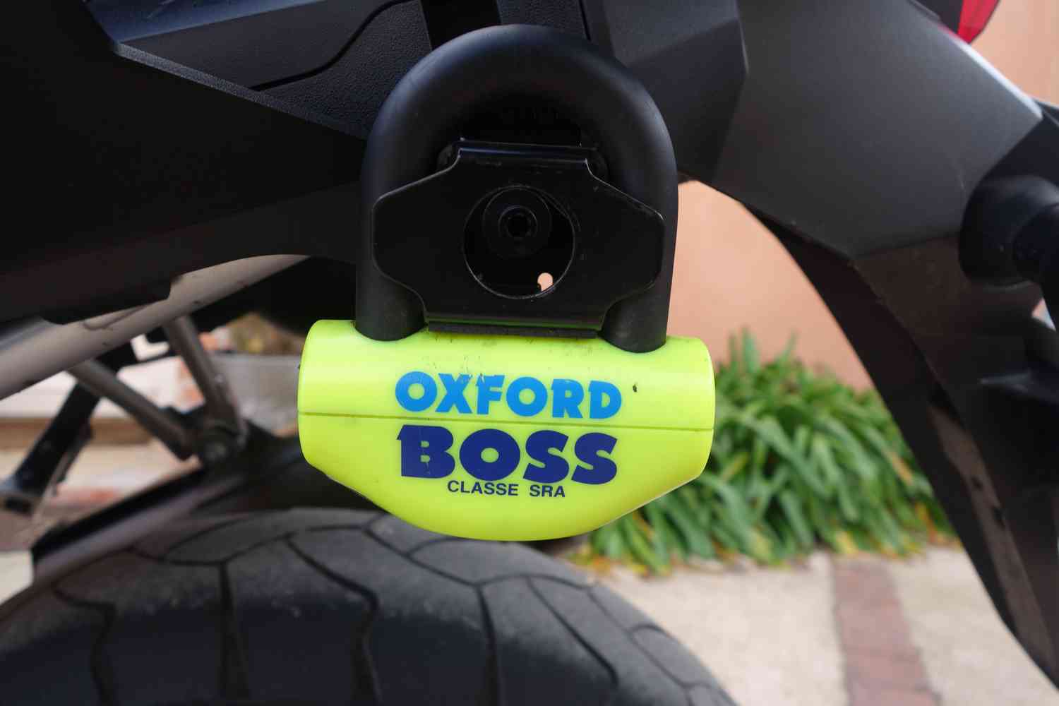 En plus de la clé codée d'origine, bloc disque agréé SRA (Oxford Boss avec support à demeure, très pratique, qui vient de ma nouvelle monture achetée d'occas) et, quand je vais à Marseille, un U Artago agréé pour attacher la moto à quelque chose de fixe, que je conserve depuis plusieurs motos. Factures/justificatifs transmis à l'assurance au cas où.....
