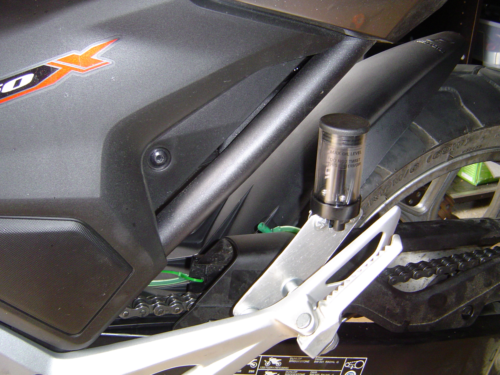 Montage du Tutoro Oiler (graisseur automatique de chaine dont l'ouverture se fait avec les vibrations de la moto) .