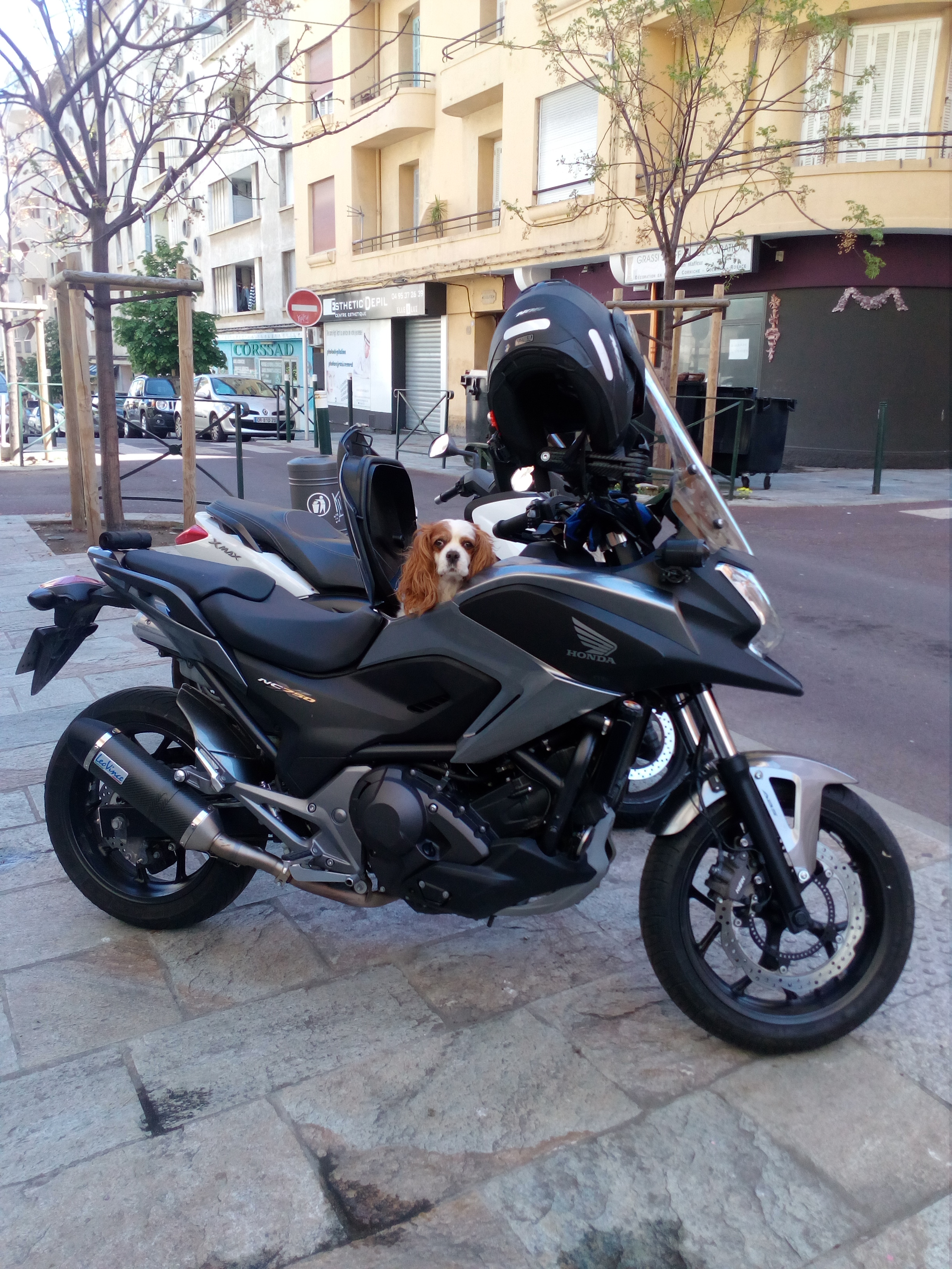 Pour un chien dans la sacoche réservoir il faut un chien de poche... Et sur un Integra c'est pire...