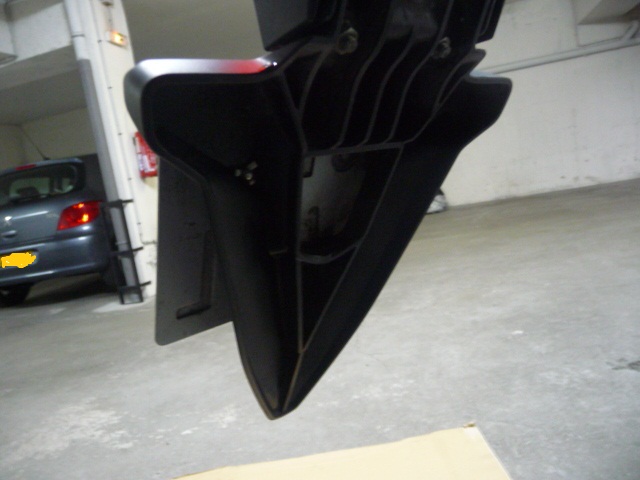 Je trouve qu'il y a beaucoup de projections arrières lorsque l'on roule sous la pluie. Mon Top Case me sert souvent de protection. Alors étant à la recherche d'une solution, j'ai trouvé une extension de bavette faite par Pyramid Plastics. :idea: