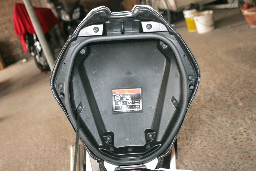 Attention de ne pas faire tomber les rondelles des vis de fixation de la selle ! J'ai galéré pour la récupérer derrière le carénage...