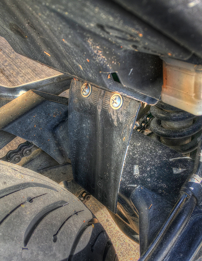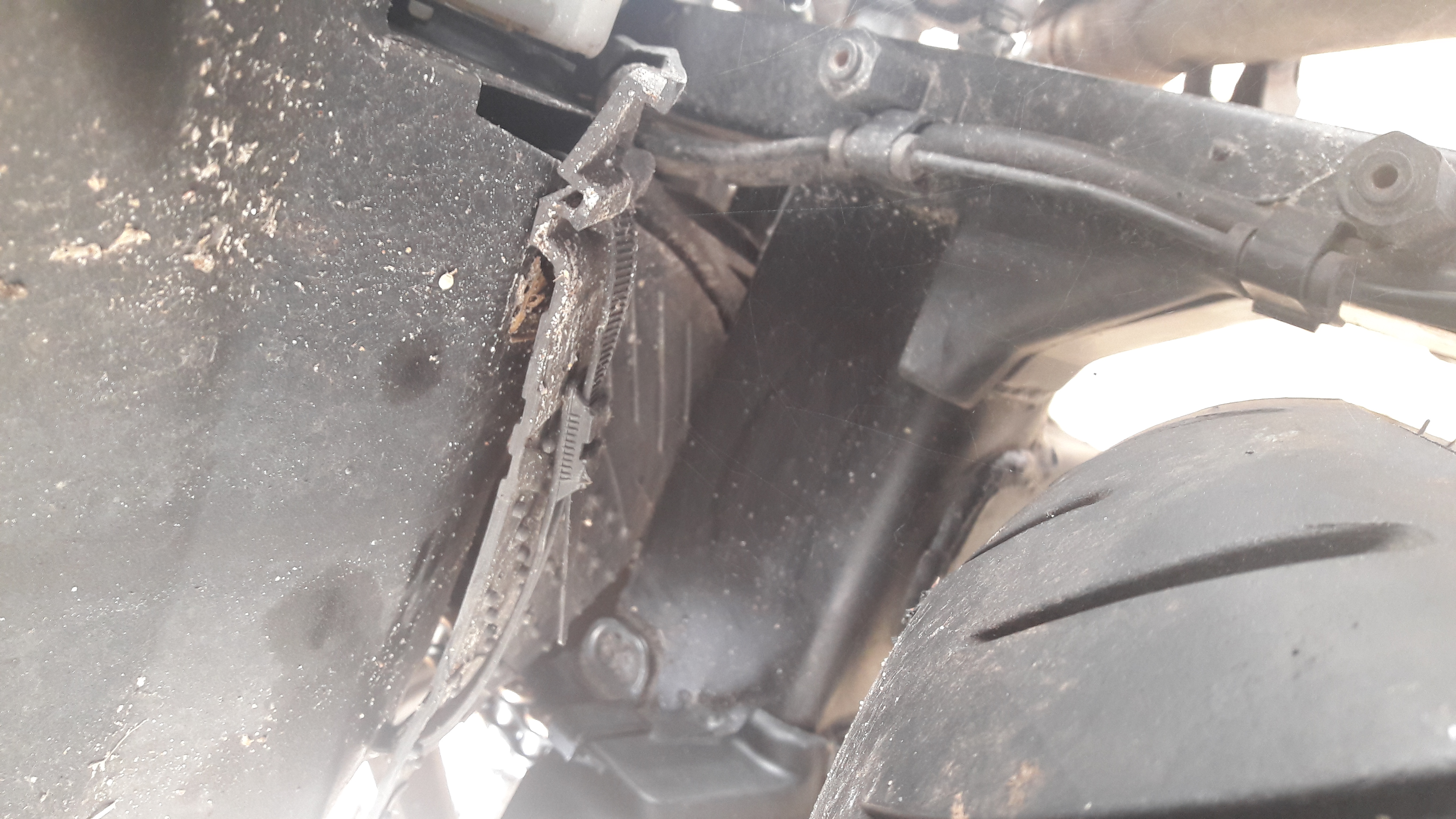 Par contre, c'est un nid à gravillon entre la jonction du lèche roue et le protège chaîne, à hauteur du repose pied passagé.