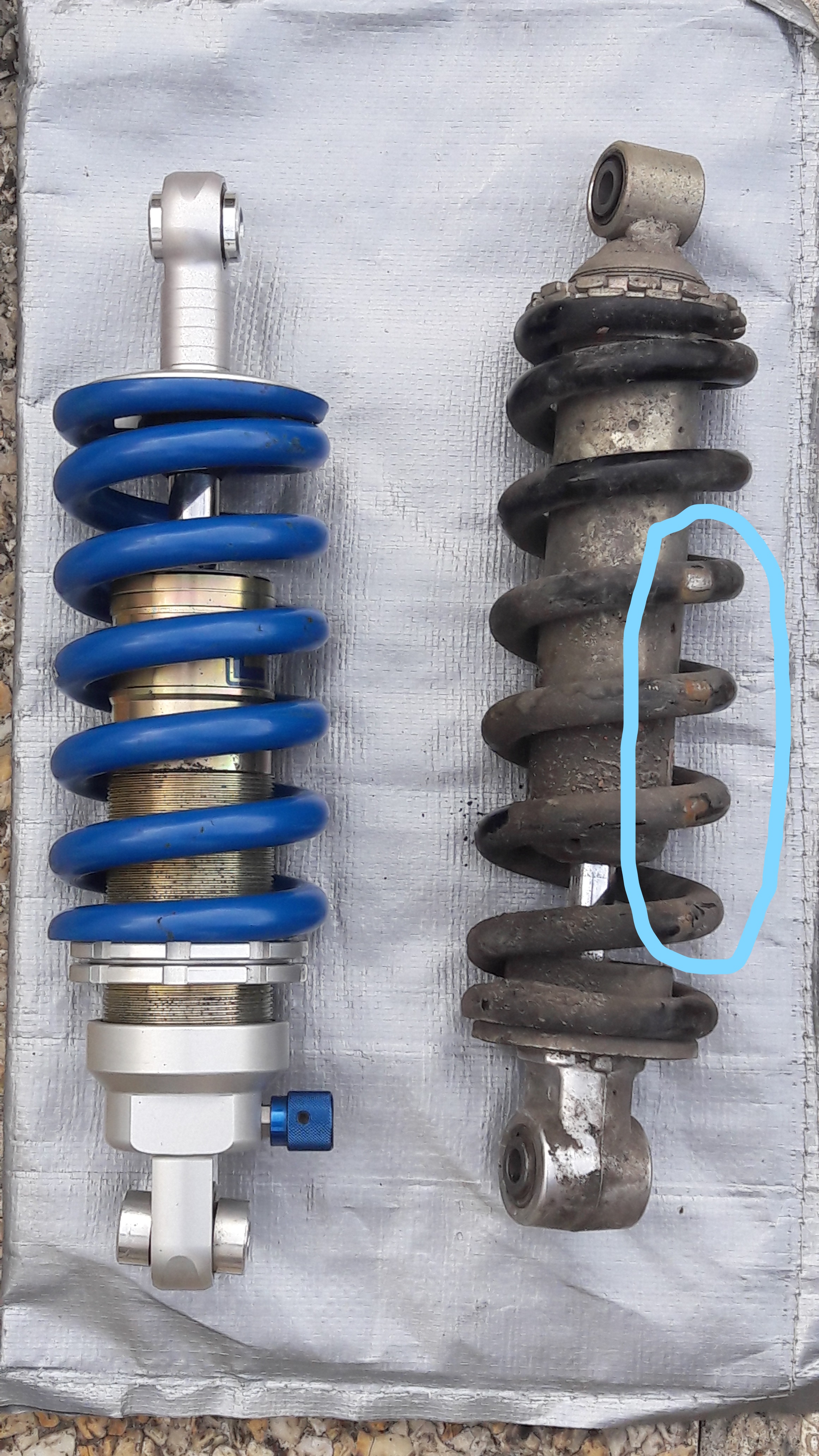 Par contre, à proscrire le rislan, lorsque j'ai démonté l'amortisseur pour le remplacer, j'ai relevé des traces de frottement sur le ressort alors qu'en statique il ne touche pas.