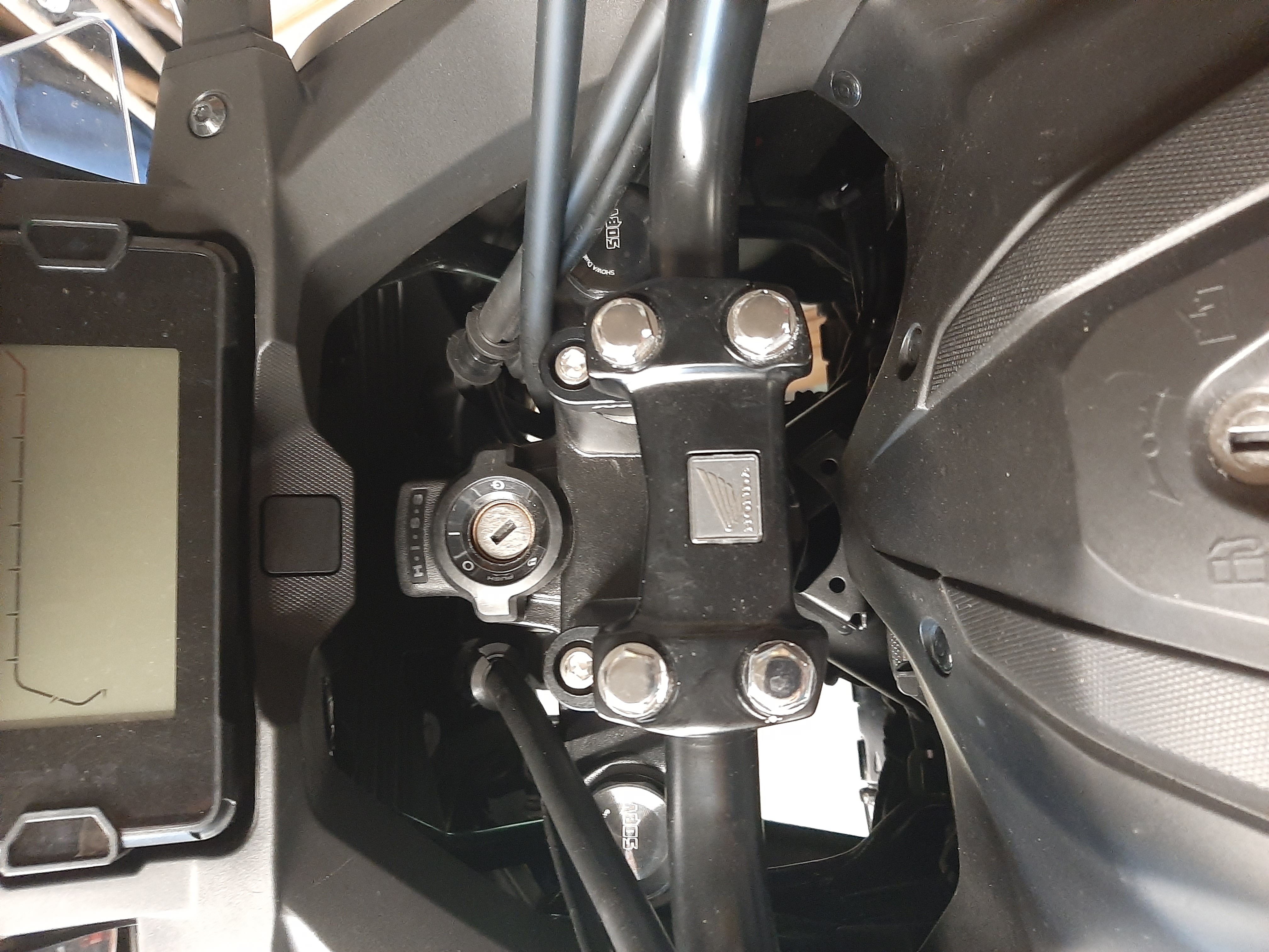 je n'ai pas remonté le pontet Honda d'origine car les vis n'ont pas trouvé facilement "leur chemin" , je n'ai pas insiste d'autant que cela libère l'accès a la clé de contact.