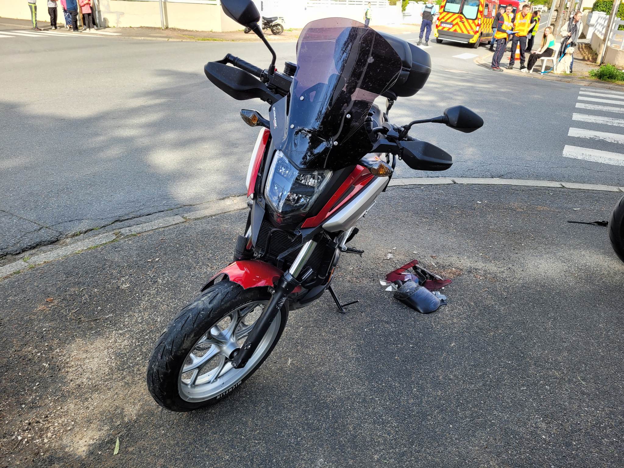 moi ça va ma femme est blessé un jeune en voiture nous a couper la route nous ne sommes pas en tort. l'expert m'en donne 6500€ chose que je conteste elle m'est revenu à 8500€ avec beaucoup d'accessoire rajouté il y a 1 an et demi. je dois racheter l'épave à l'assurance 1000€. j'ai déjà racheter la même en bleu chez HONDA à Royan. je remets mets mes accessoire sur la bleu et je revends à petit prix le reste de l'épave. il y aura comme accessoire à vendre l'ensemble sacoches-top cas, la selle confort, protège mains et le reste de la moto il y juste un choc avant, la moto n'a pas touché le sol au choc la moto c'est mis droite sur la roue avant ma femme à d'coller pour se trouvé de l'autre coté de la voiture moi je suis tombé le long de la voiture et la moto met tomber dessus. mais bon à passer 60 balais le goudron est dur!!
