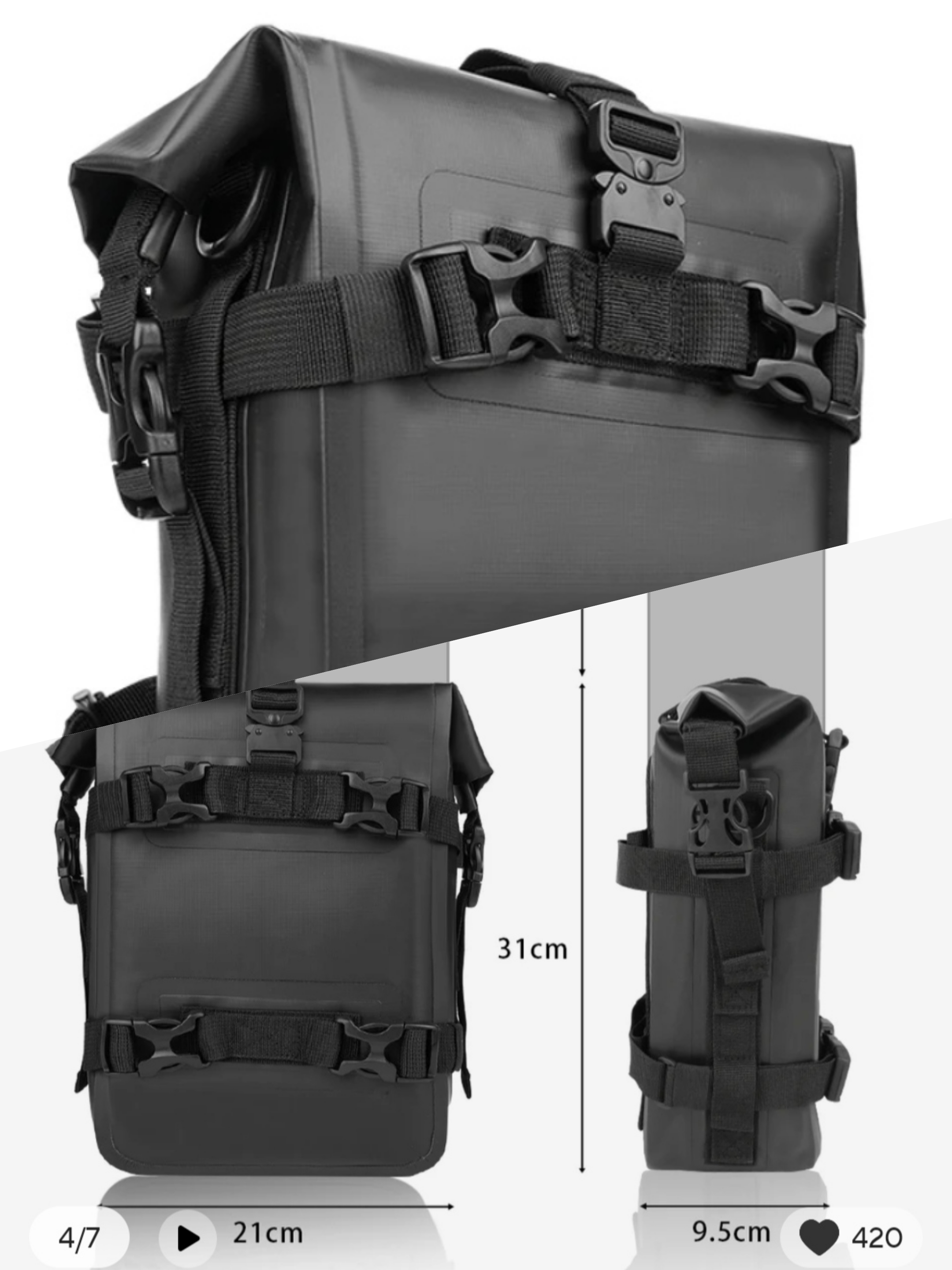 Je cherche une sacoche pour ajouter à mon réservoir, se fixant par clips, avec des lanières passant dans les 4 trous, idéalement svp ?
