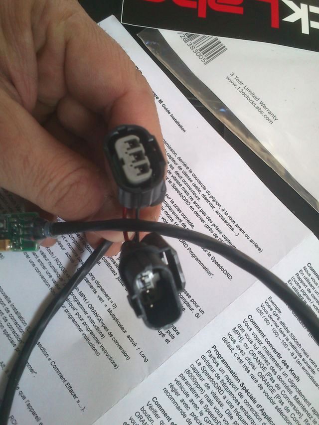 Brancher ensuite le speedo sur le faisceau, puis sur le capteur de boite. On ne peut pas se tromper.