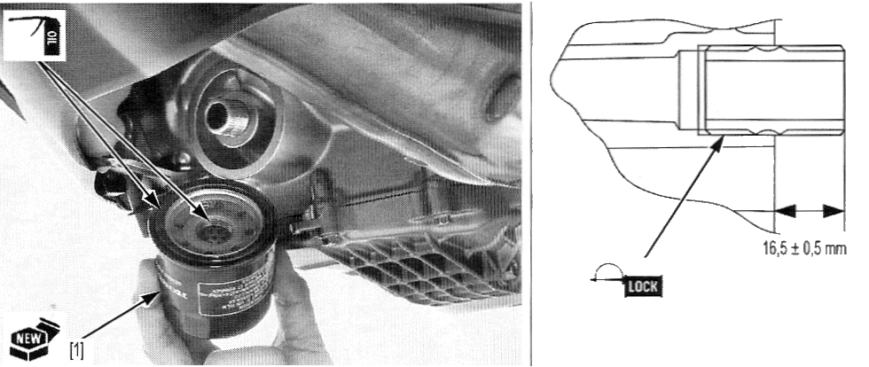 Avant le montage du filtre : lubrifier sont joint et son taraudage avec un peu d'huile. Nettoyer la portée du joint sur le carter moteur.