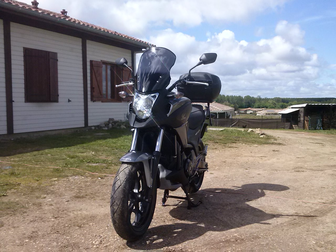 Le pot et le pneu ont été installés après qu'une mamie me soit rentré dedans alors que j'étais arrêté à un stop.