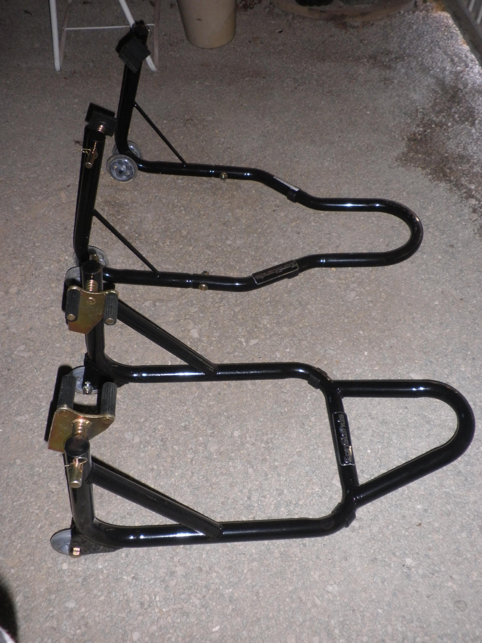 J'ai deja vu l'utilisation de la bequille de stand chez un pote , vaut mieux etre a 2 pour assurer la manœuvre en toute securité.