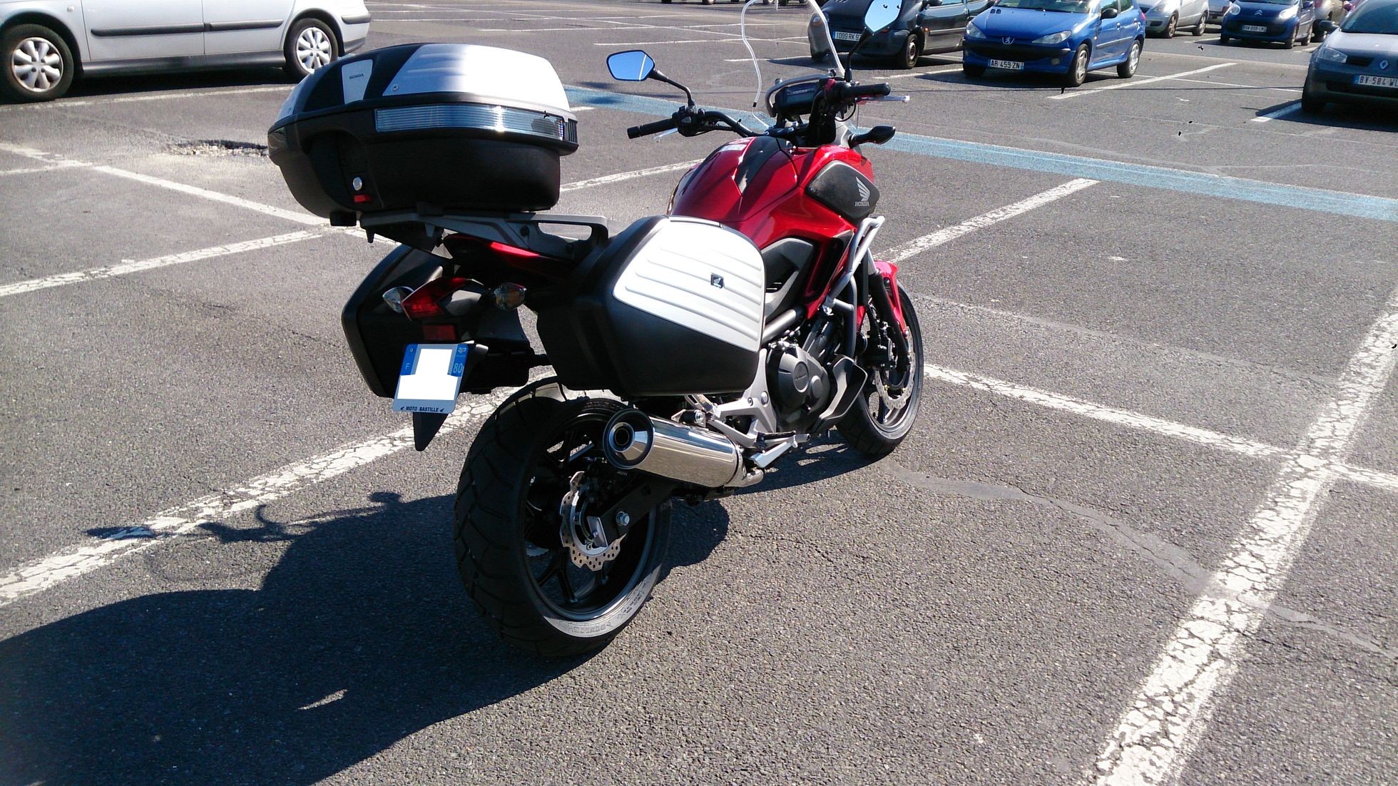 A l'heure où chaque peinte porte un numéro facilement identifiable, rendant cette peinture facilement reproduisible et acquérable, je verrais bien les flancs des valises peinte en rouge (Le même rouge que le carénage bien sûr).