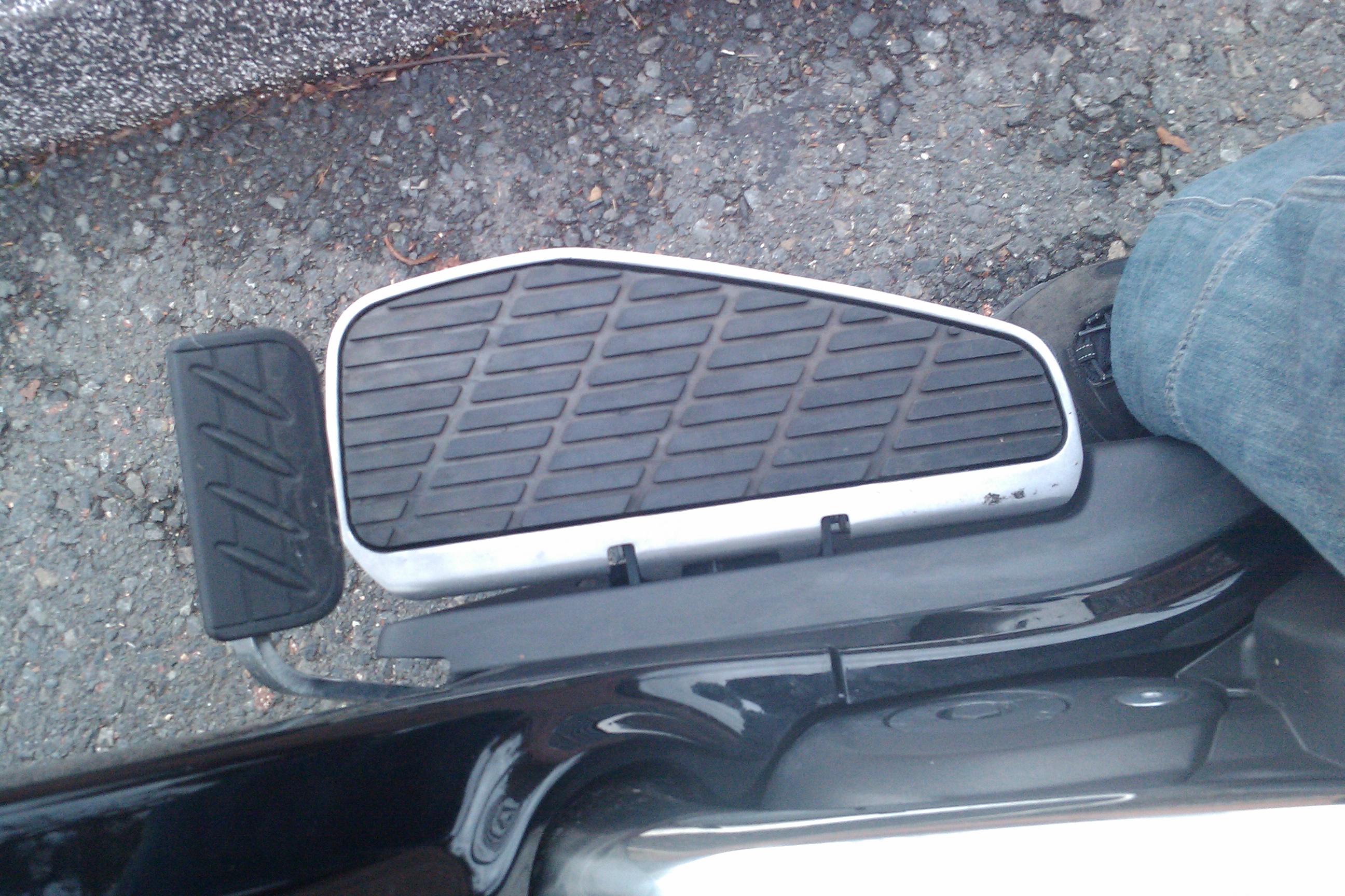 Ha zut oui les reposes machins sont loin devant, en démarrant j'ai posé le pied par terre, heureusement à faible allure.