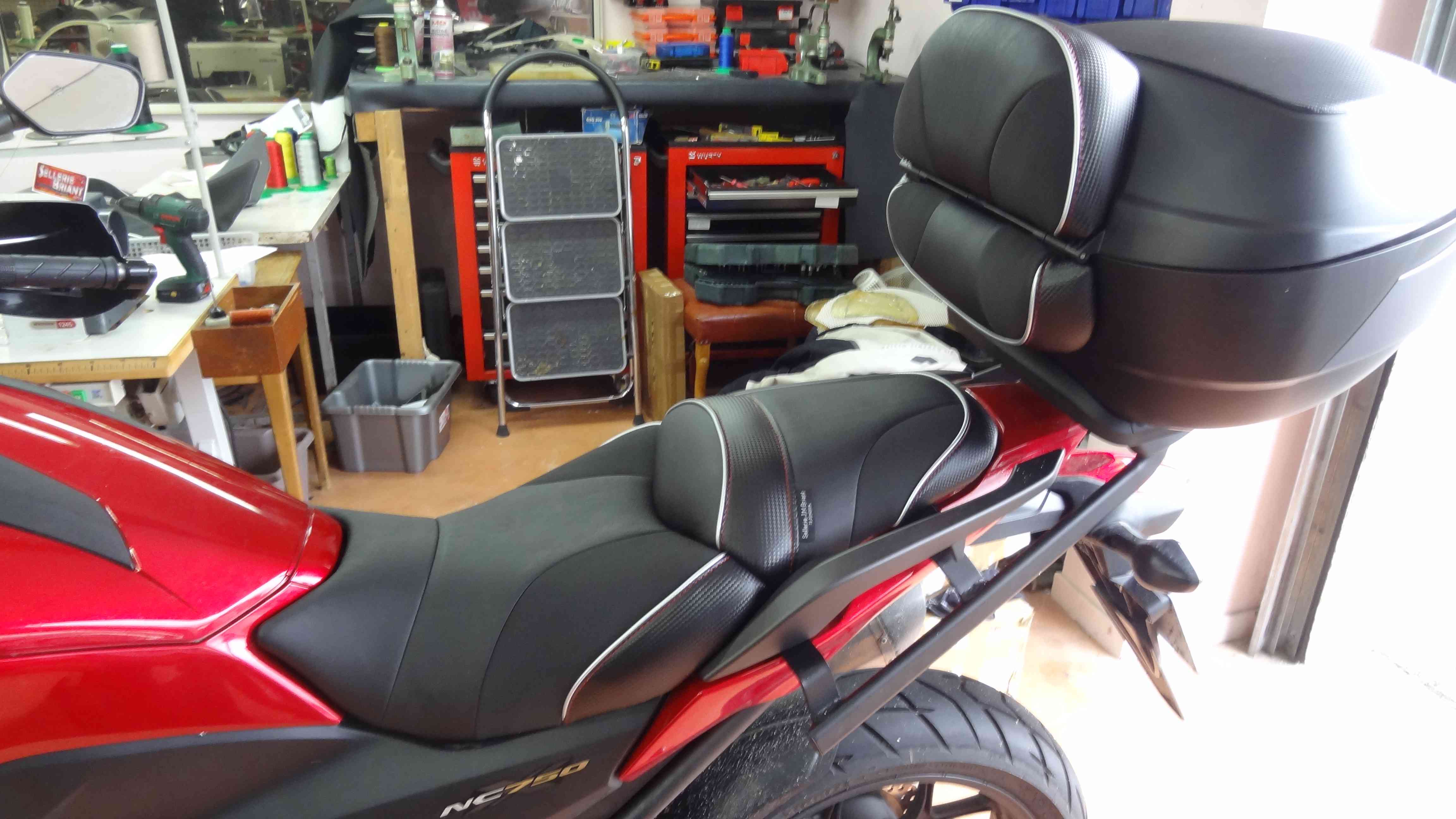 Ave mon top-case Shad/Honda 48 L et le dosseret refait par J-M Briant ça va, mais c'est le support Shad qui recule un peu le top fort heureusement !!