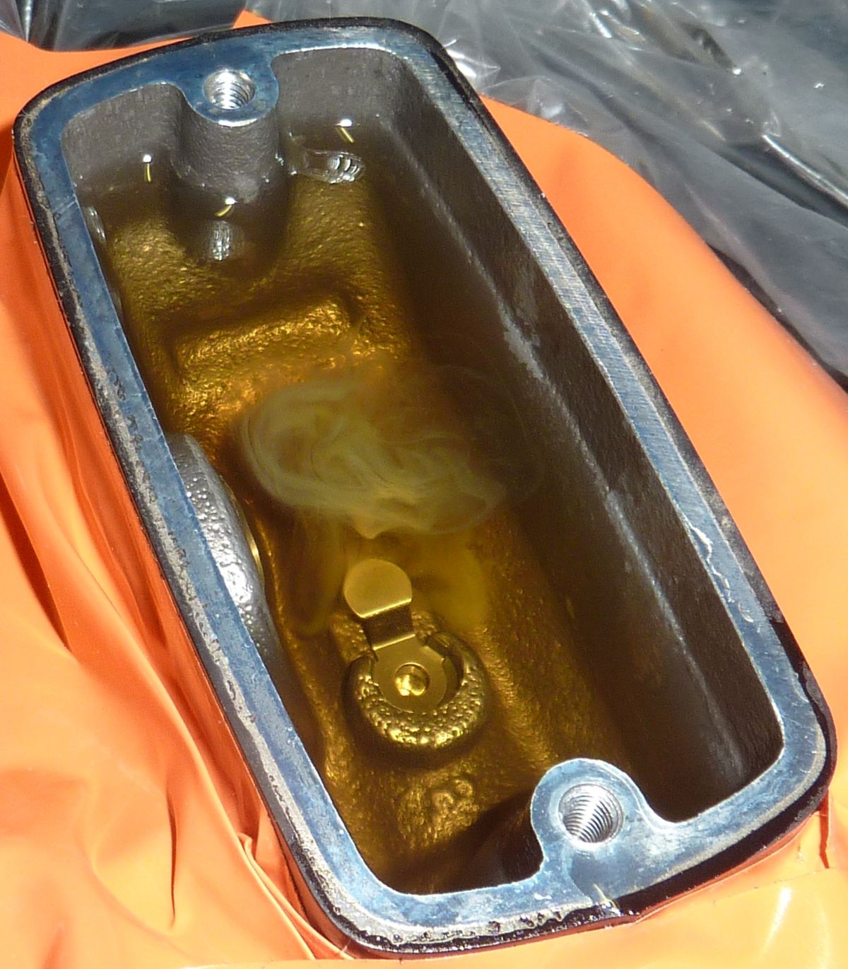 Ensuite, j'ai tout bien nettoyé les pistons. Brosse à dents, pinceau un peu dur, le petit truc en plastique conseillé par Clod, de la patience et quelques sparadraps pour les doigts parce que ce n'est pas facile d'atteindre les recoins (sauf à avoir un Guillaume sous la main et lui donner comme mission de passer entre les pistons avec quelques chiffons dans sa poche -si, si.. il passe, je vous jure- :lol: )