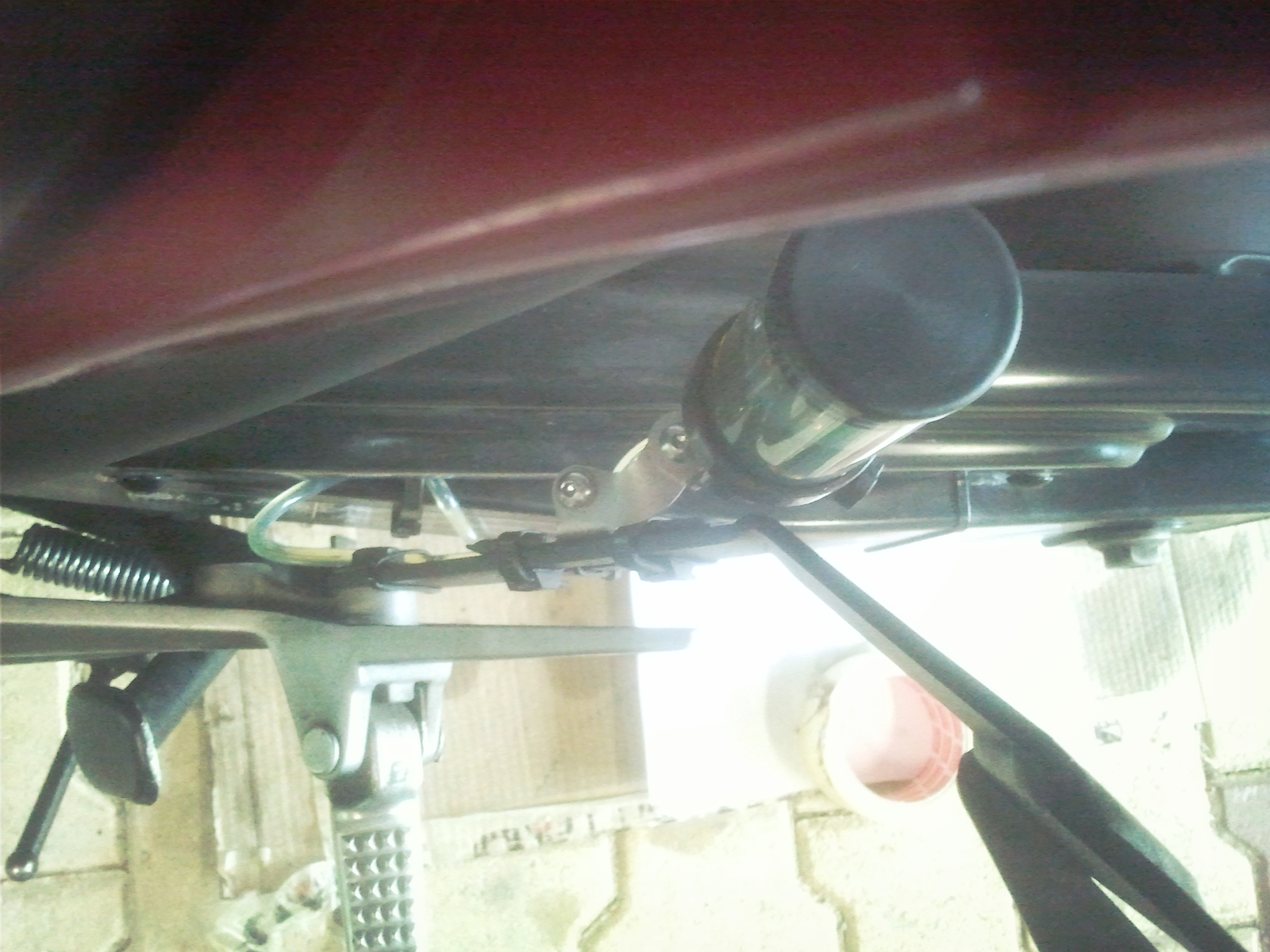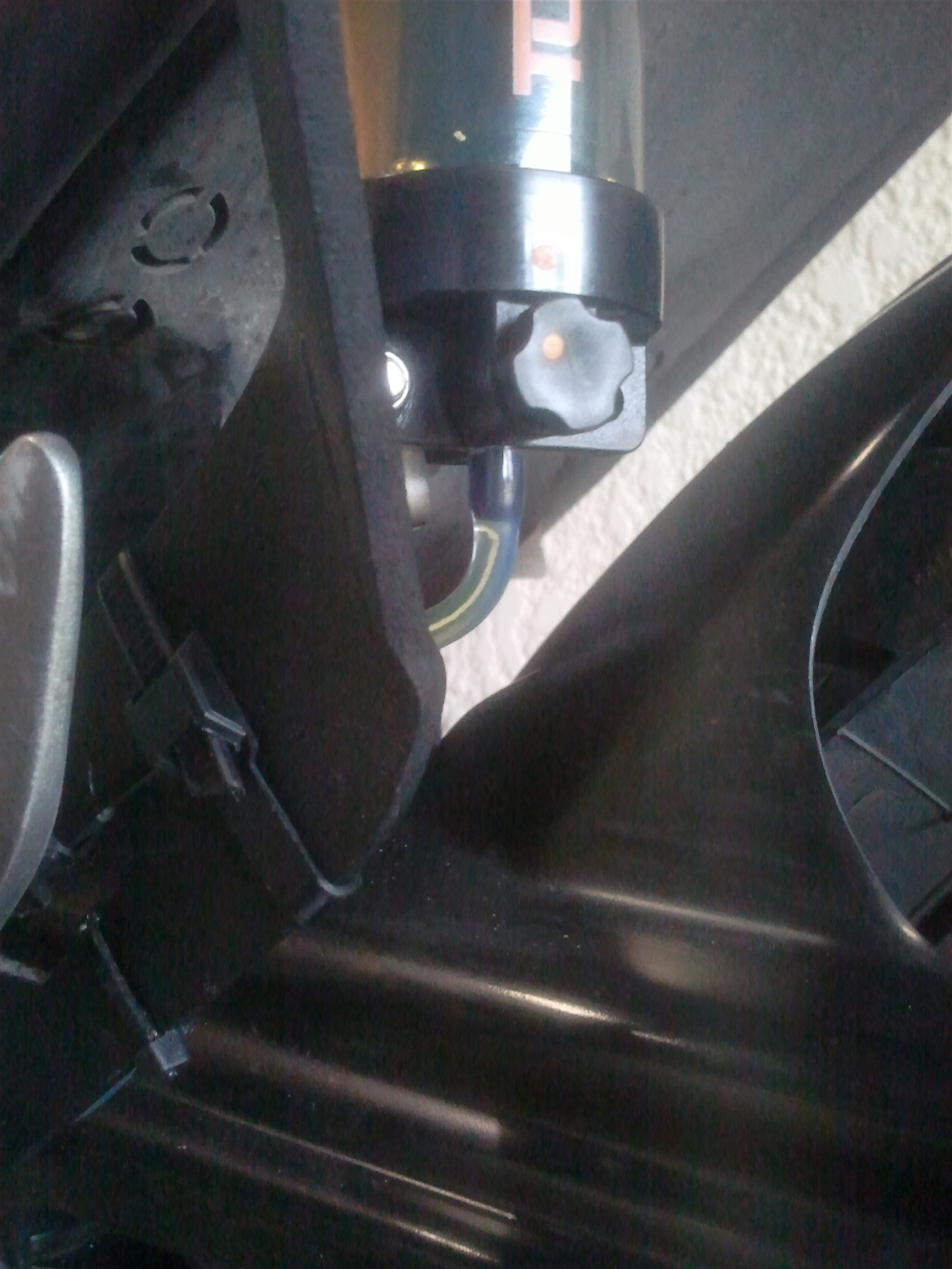 VUE D'ENSEMBLE DU SYSTEME DETAIL, FIXATION SUR SUPPORT VALISE SHAD MON REGLAGE? 1/8 DE TOUR (testé hier par 35°=>huile fluide) VUE DE DESSUS VUE DE DESSOUS