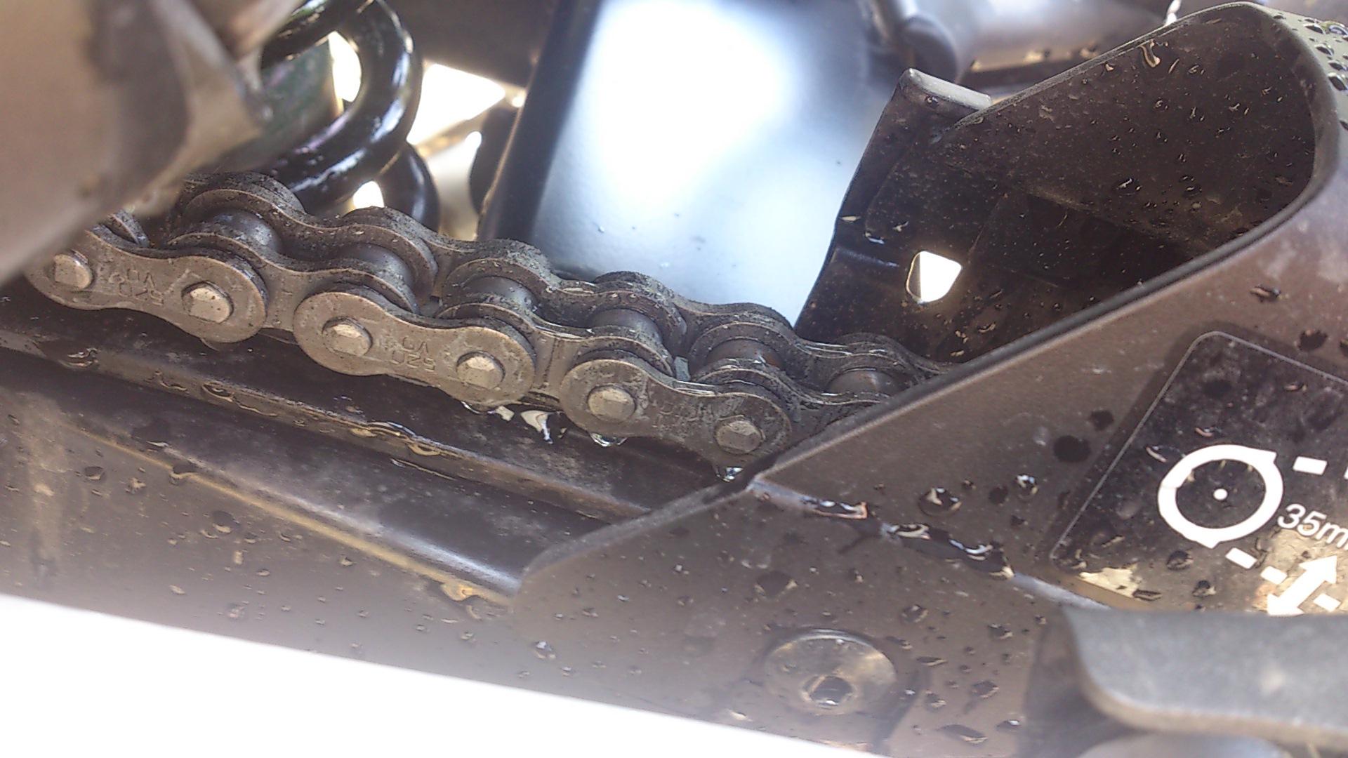 Pendant le lavage de ma moto, je me suis aperçu que la protection de la chaîne bougeait drolement beaucoup...