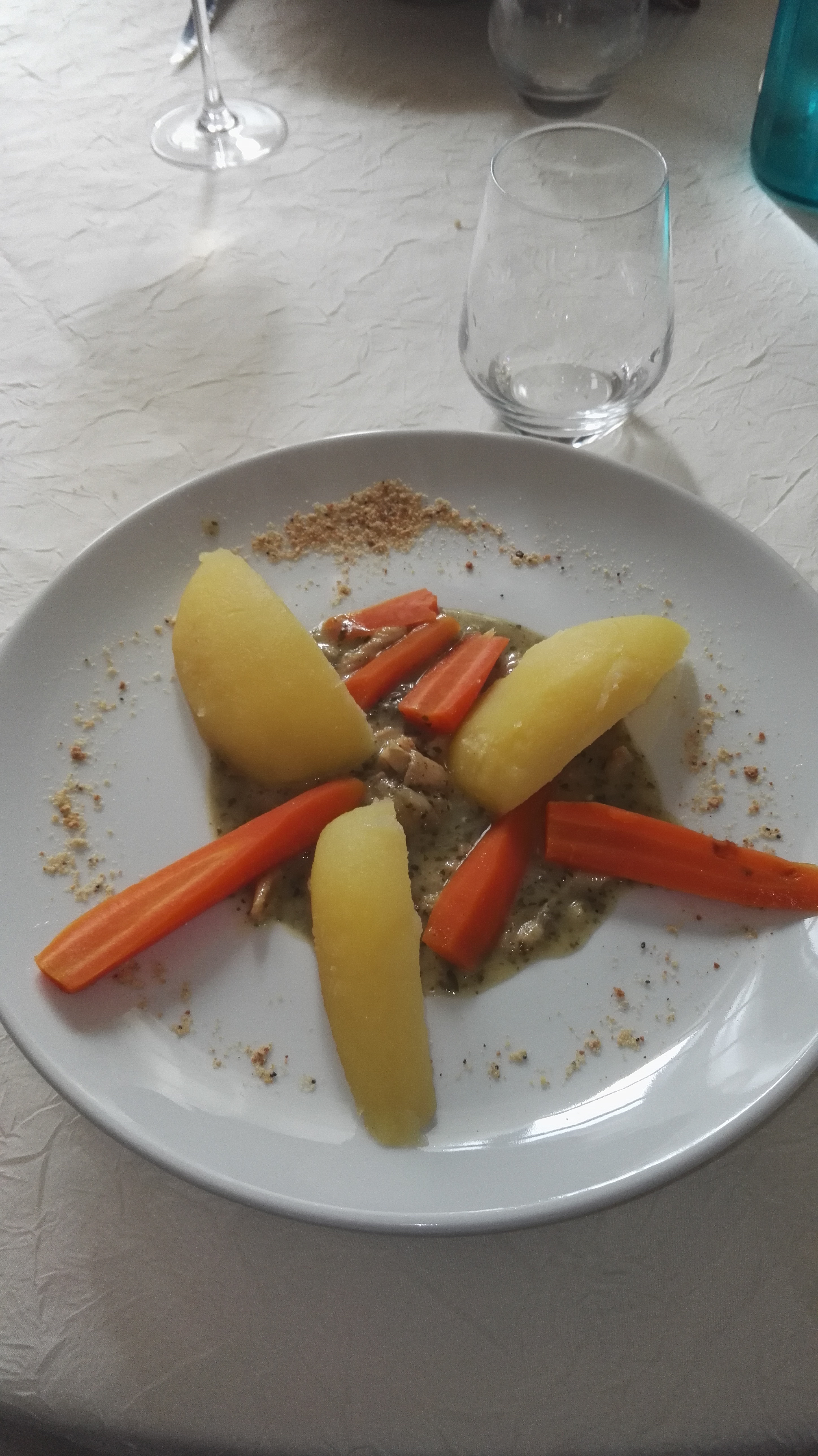 un délicieux civet de sanglier avec des gnocchis maison (magret d'oie très réussis pour ma passagère)