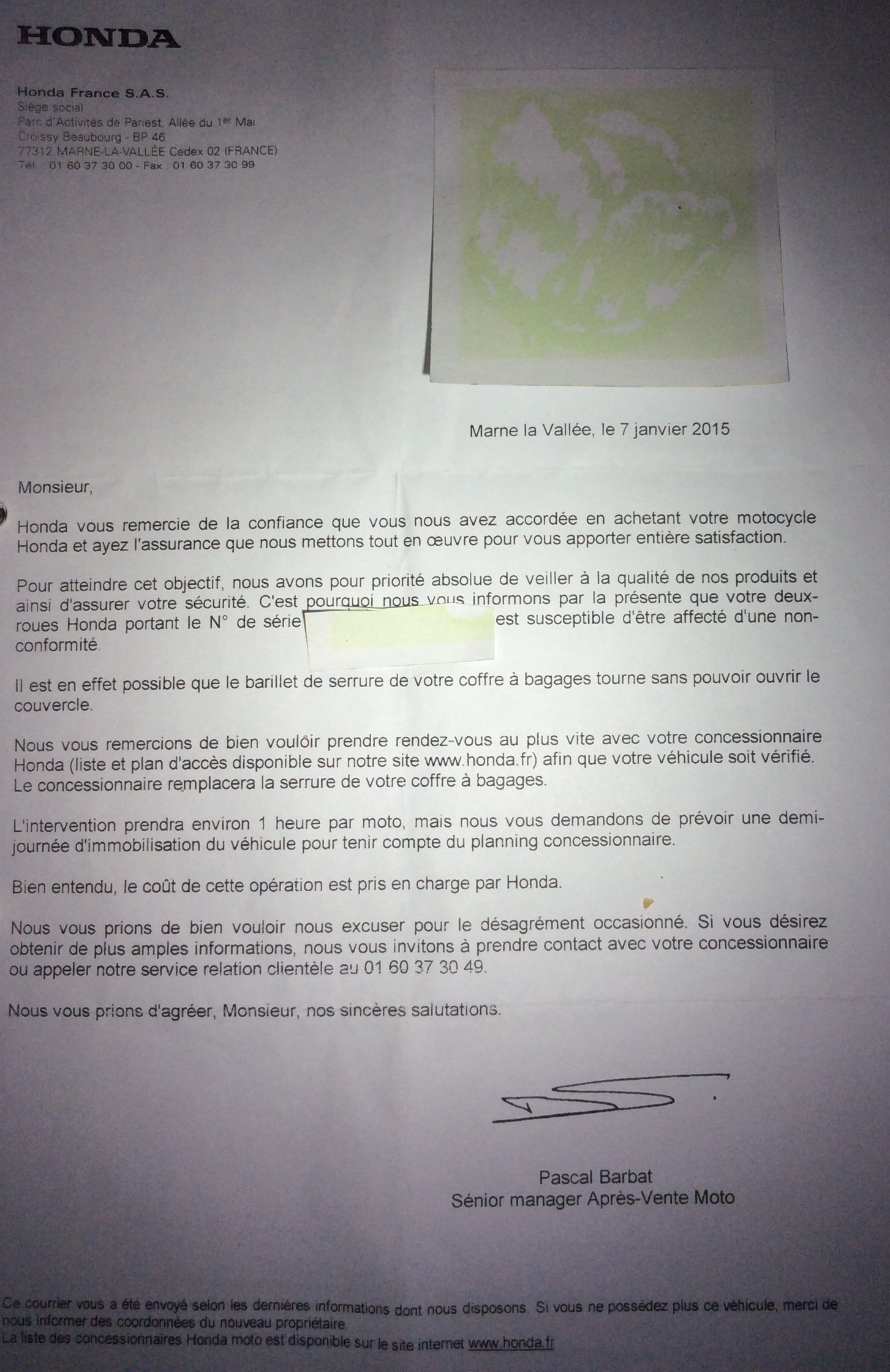 bebenours a écrit :Bonjour, j'habite à LA REUNION et j'ai une NC750X DCT depuis 2 mois mutuelle senior. Je viens d'avoir le courrier HONDA et j'ai pris RDV avec mon conc. Aussitôt qu'il aura la pièce ( car il doit la commander ) il m'appellera.