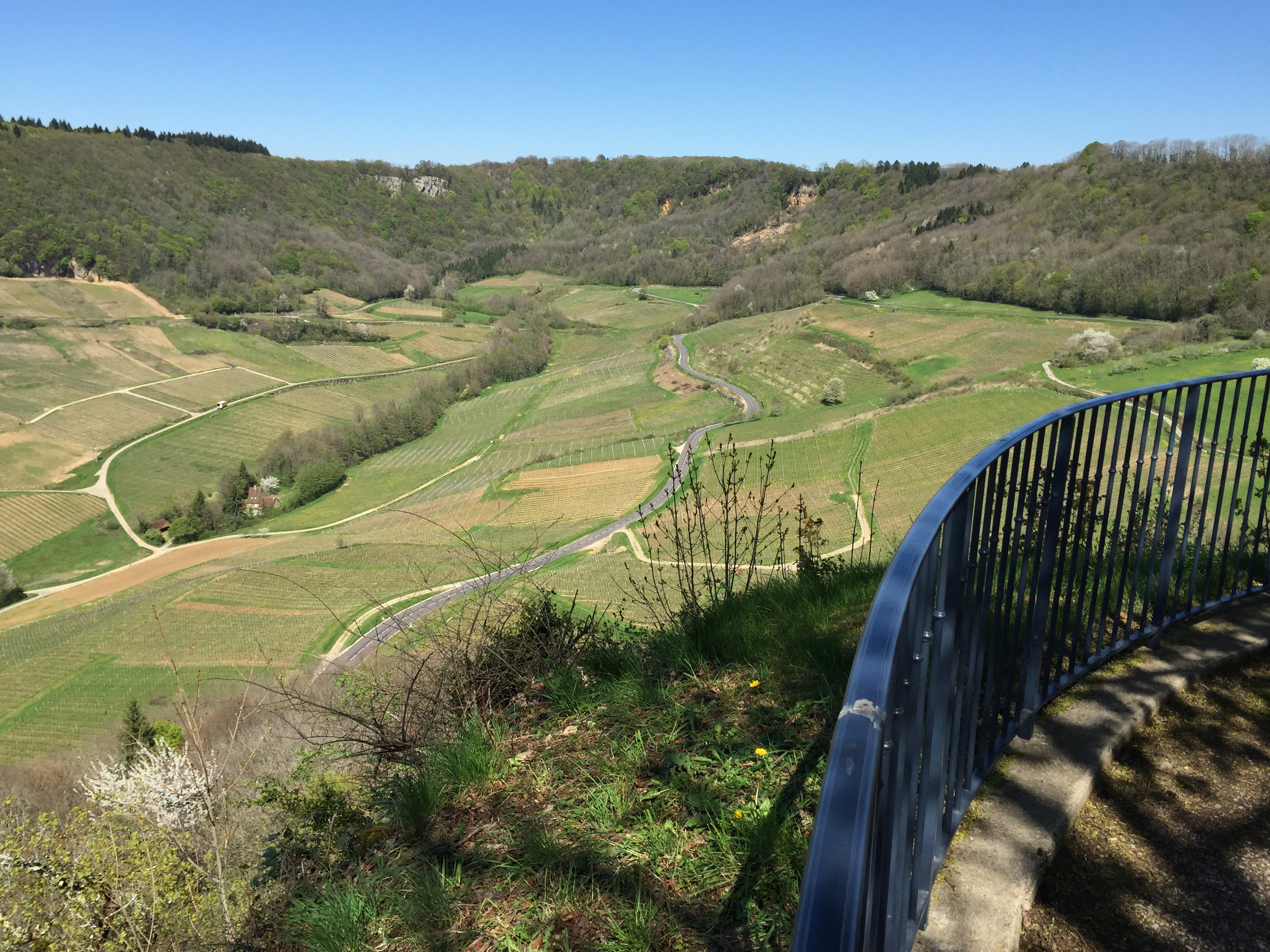 Départ en direction de Château-Chalon, un des plus beaux villages de France et premier arrêt du matin au belvédère qui surplombe une partie des vignes autour de ce village haut perché. Dans la suite du parcours, nous repasserons sous le village en partant de Beaume-les-Messieurs. (Ne pas confondre avec Beaume-les-Dames ! serions nous un peu machos dans le Jura ?)