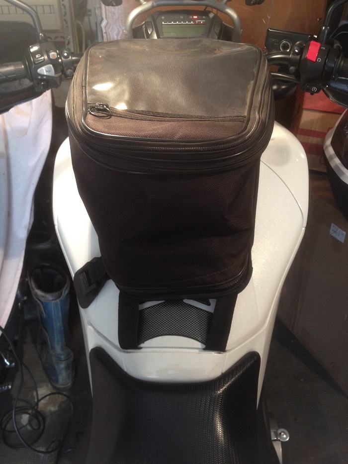 Donc dans la série je prépare ma moto pour d’éventuels voyages , je récupère une de mes sacoches réservoir avec son tapis .