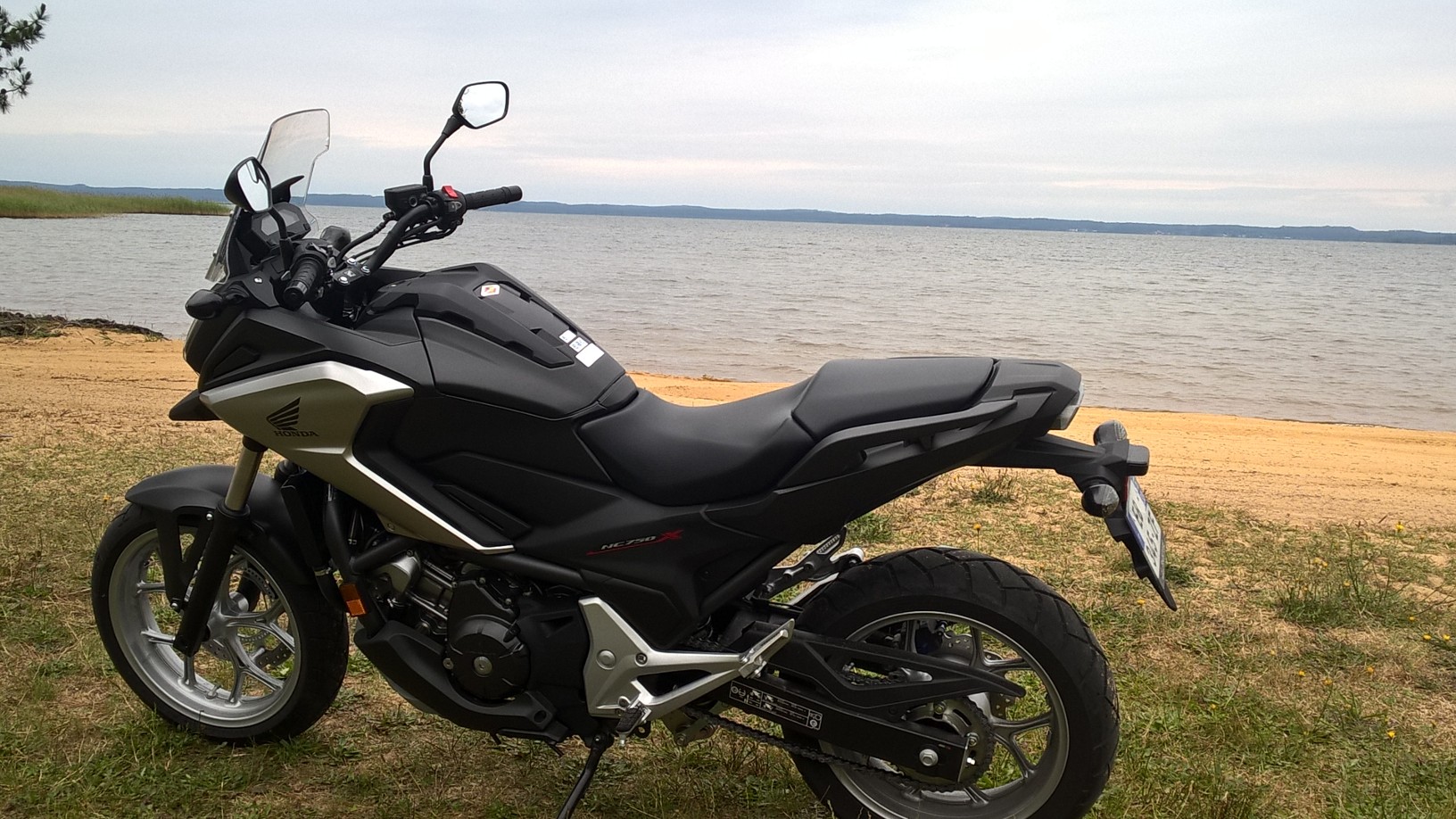 petite ballade dans les Landes au bord du lac de Cazaux pour faire les 1000 kms, j'ai rv jeudi chez Honda; elle sera alors équipée comme sur le site Honda, valises, top, béquille et pare carter!